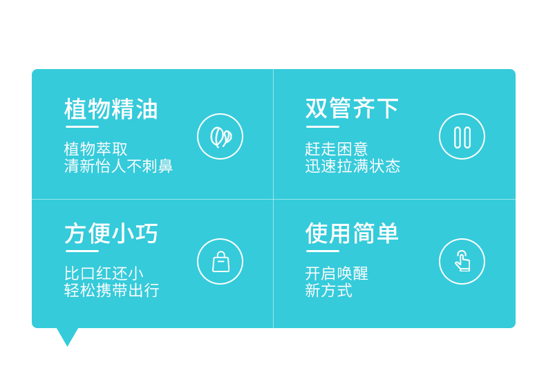 疲劳时拿出来闻一闻,提神醒脑、缓解烦躁,闻1秒就立刻舒缓~