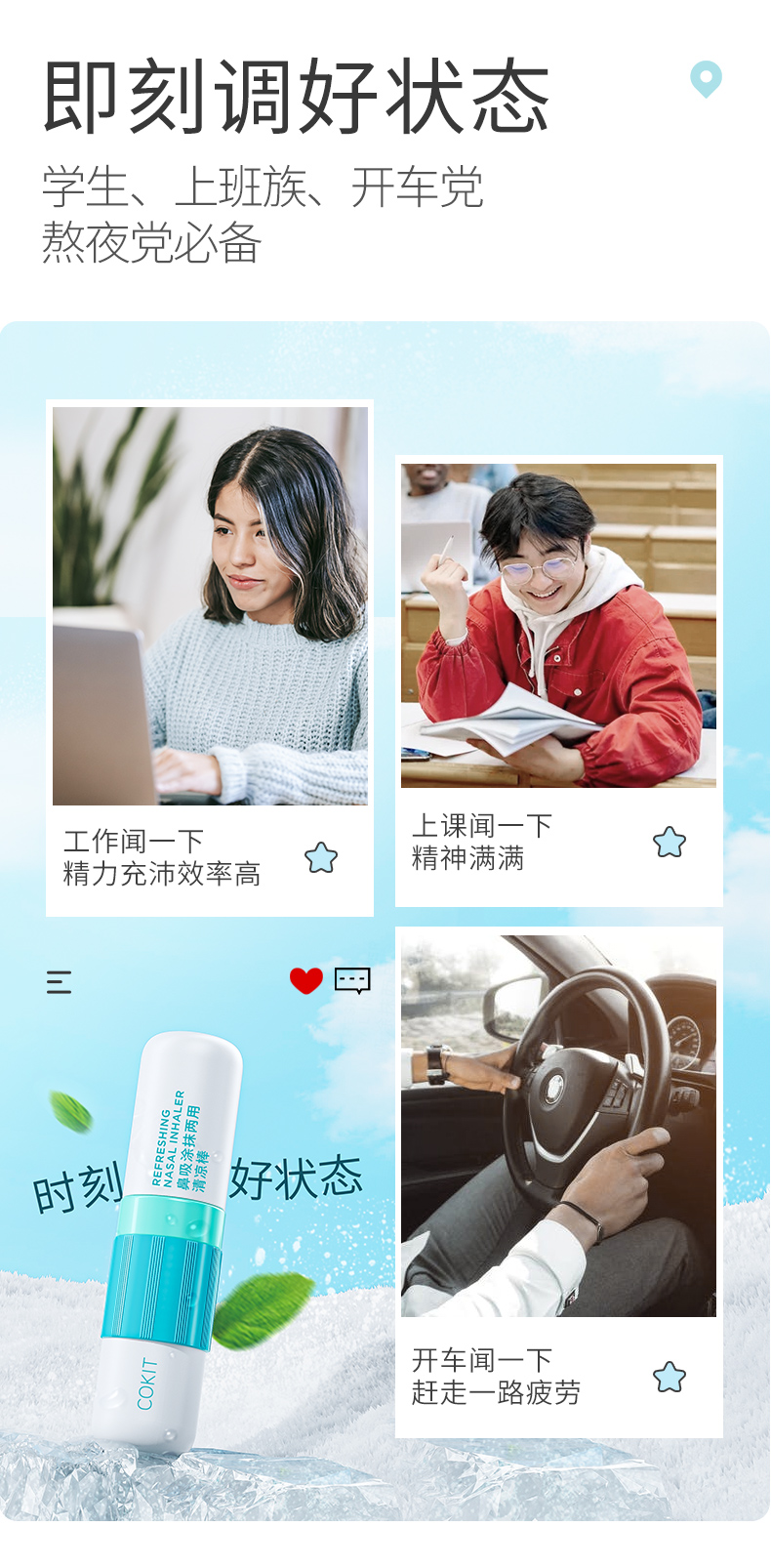 一款好的提神产品,可以帮助到很多上班族和学生党,让大家工作、学习效率提高上去也是COKIT的初衷!