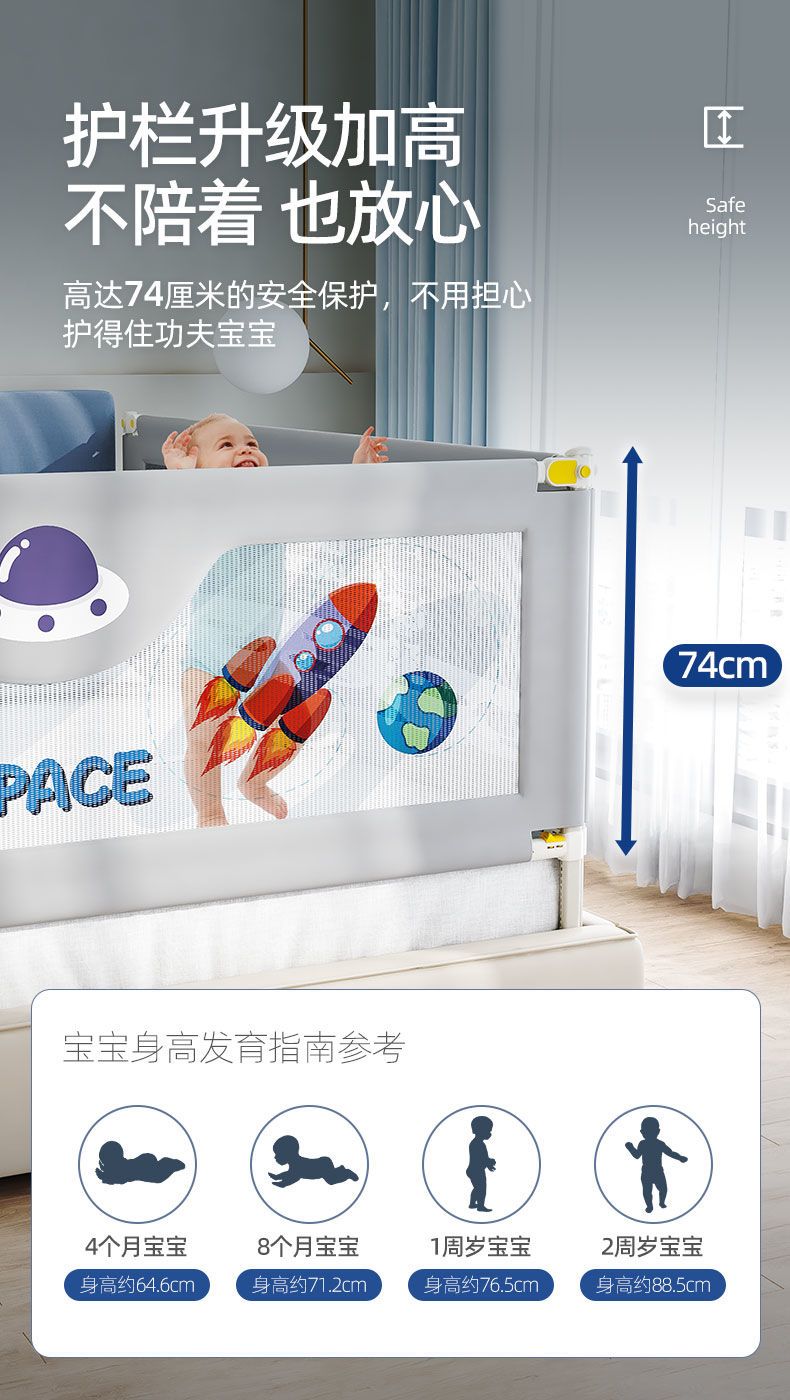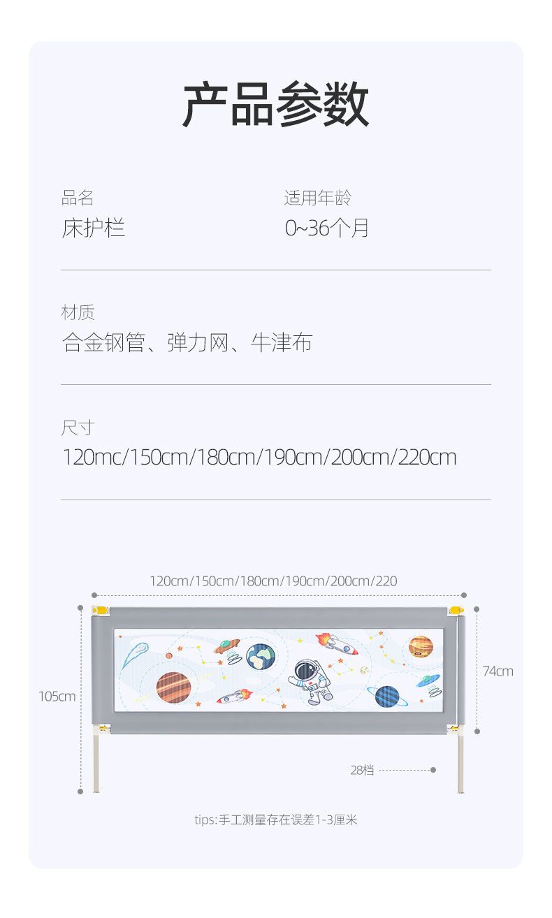 床围栏 宝宝防摔防护栏 床上边婴儿防掉床挡 儿童挡板 围栏护栏床护栏