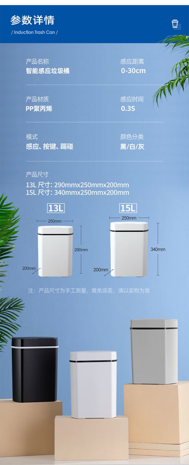 智能感应垃圾桶家用全自动厨房客厅卧室卫生间电动带盖垃圾桶大号