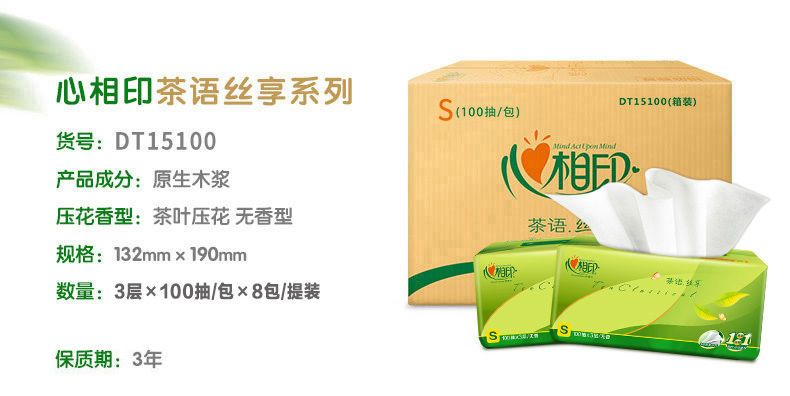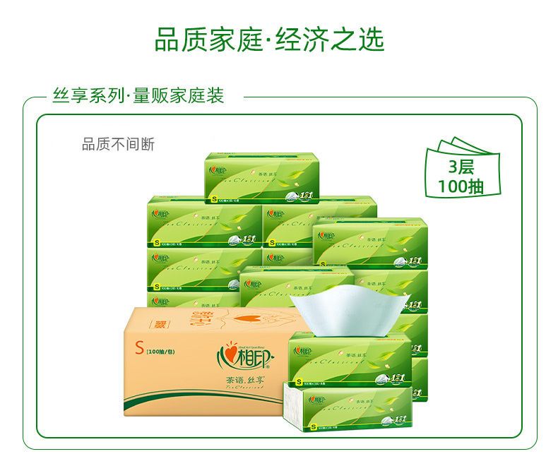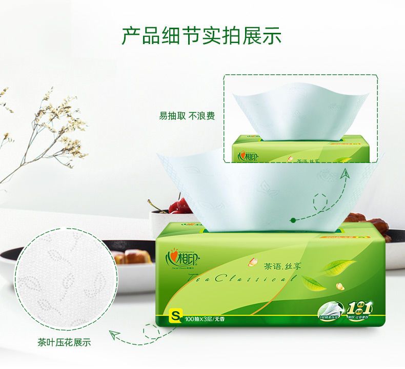 心相印抽纸纸巾茶语丝享100抽餐巾纸面巾纸自然无香纸抽