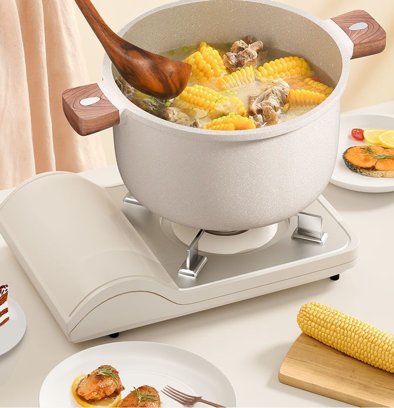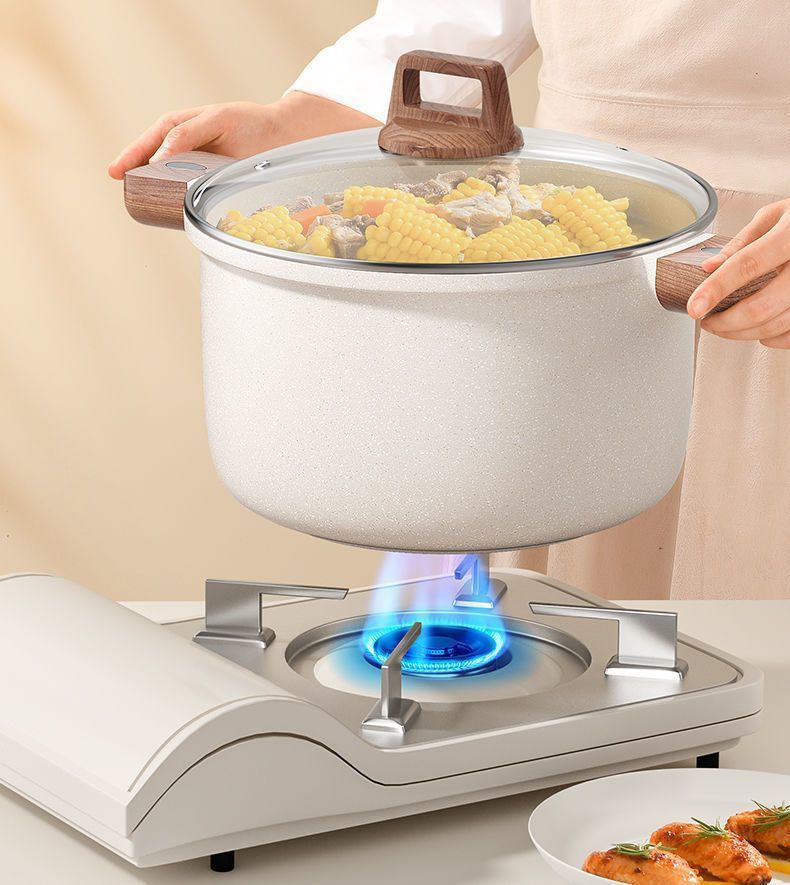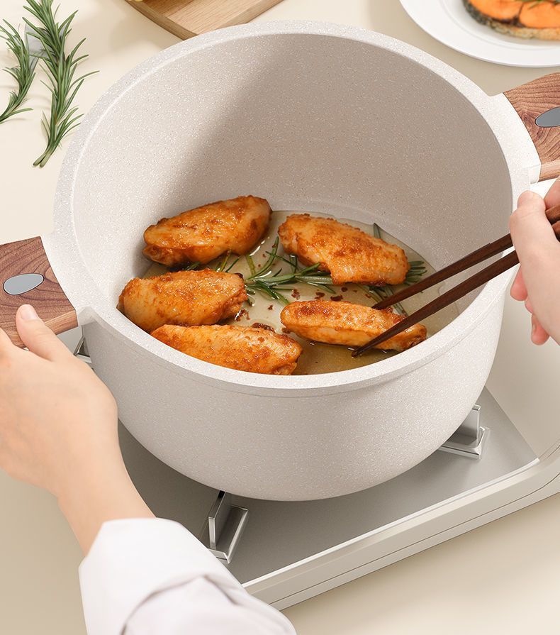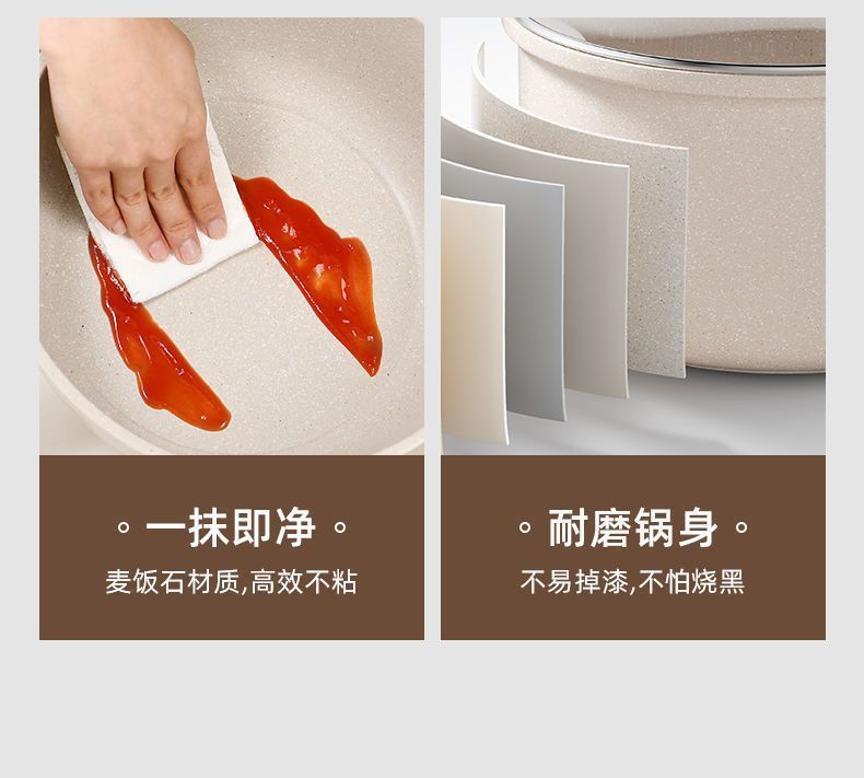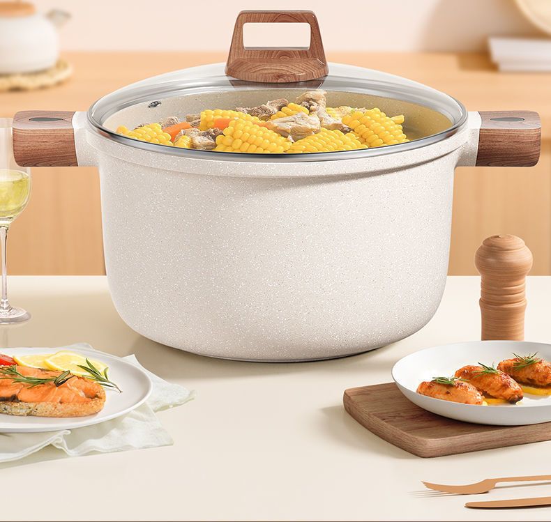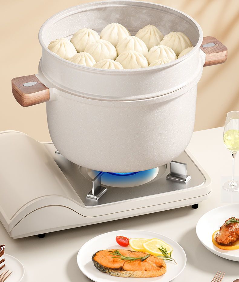 荣事达麦饭石不粘锅双耳汤锅带蒸笼炖锅蒸锅家用燃气灶电磁炉通用