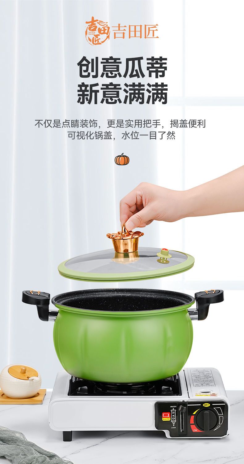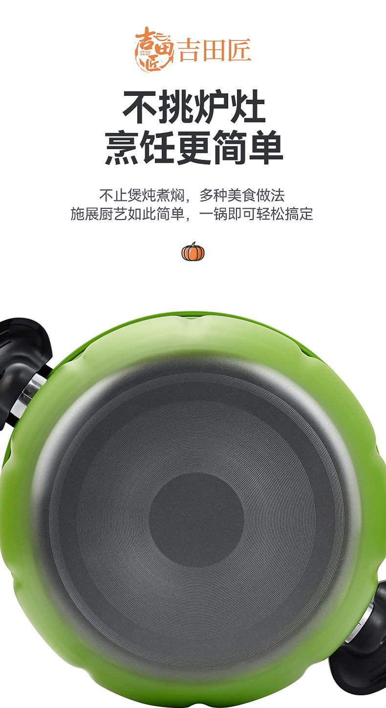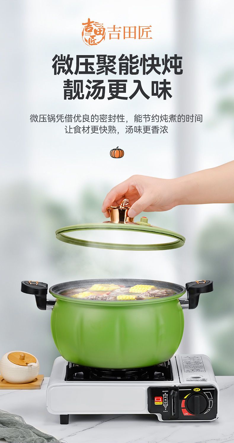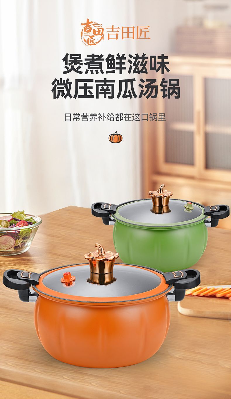 2022新款吉田匠南瓜微压锅家用大容量多功能炖煮锅麦饭石不粘汤锅