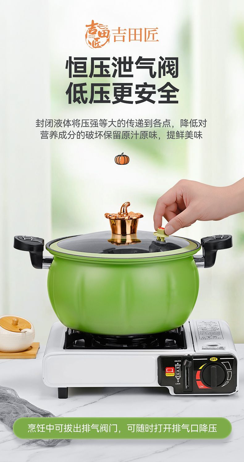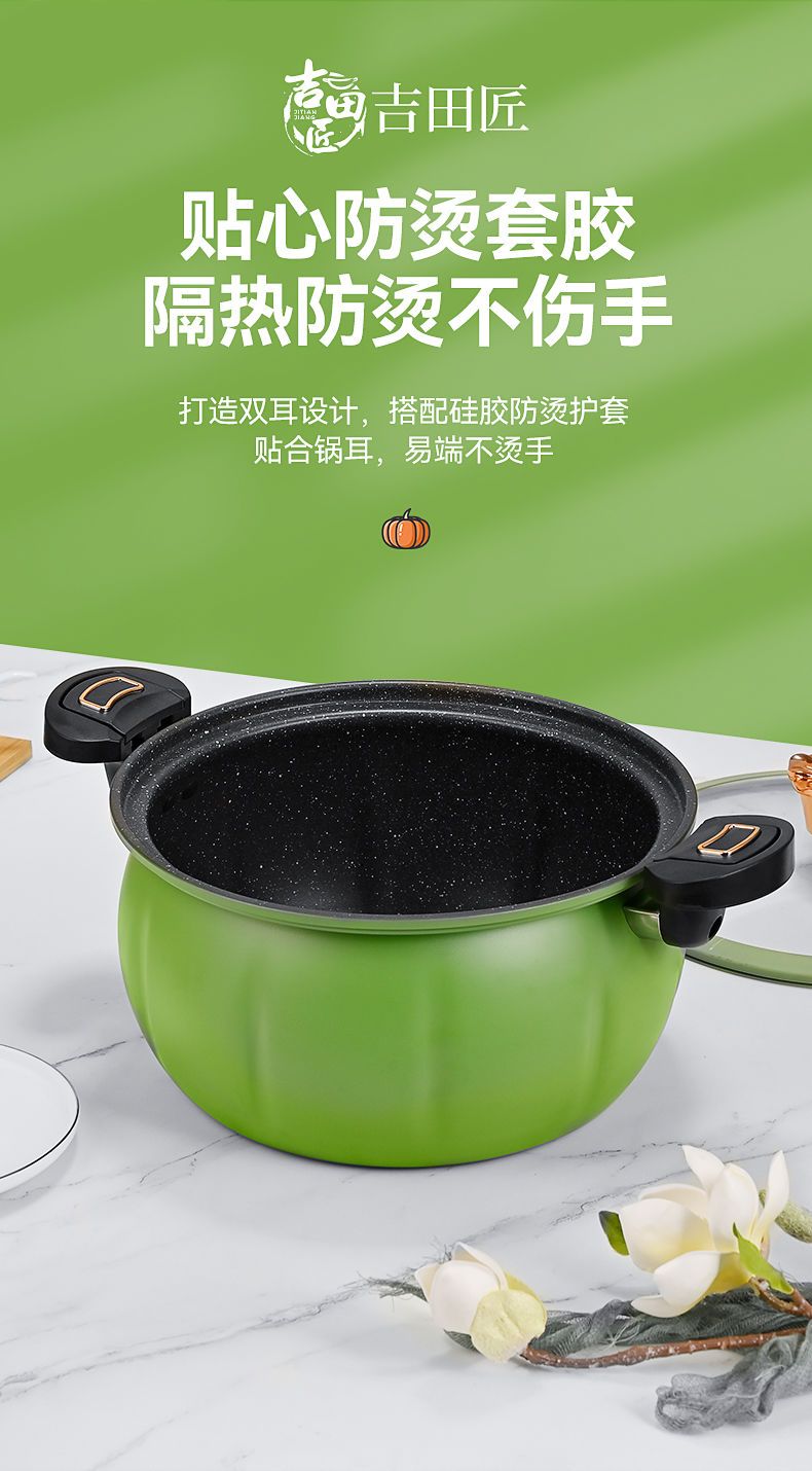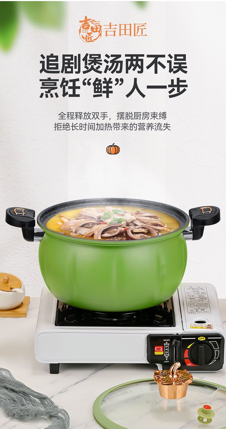 2022新款吉田匠南瓜微压锅家用大容量多功能炖煮锅麦饭石不粘汤锅