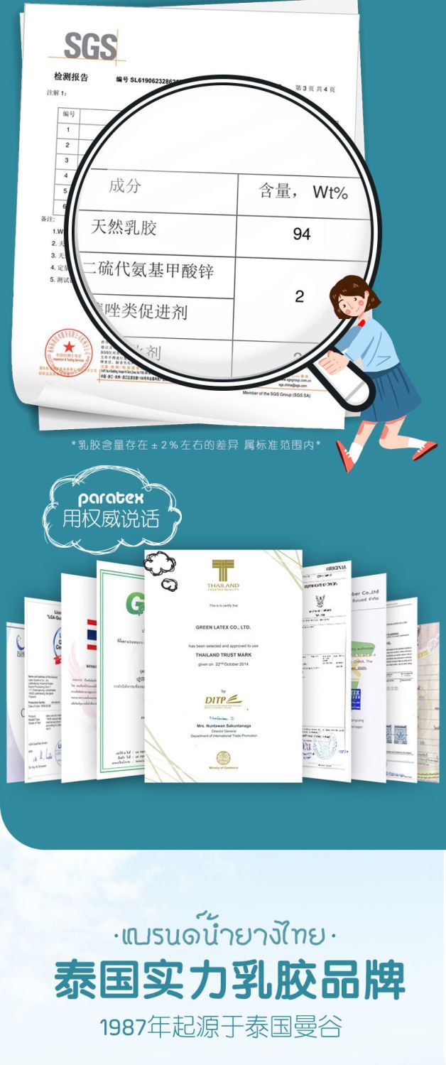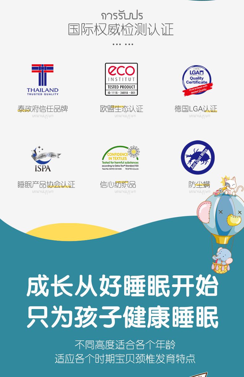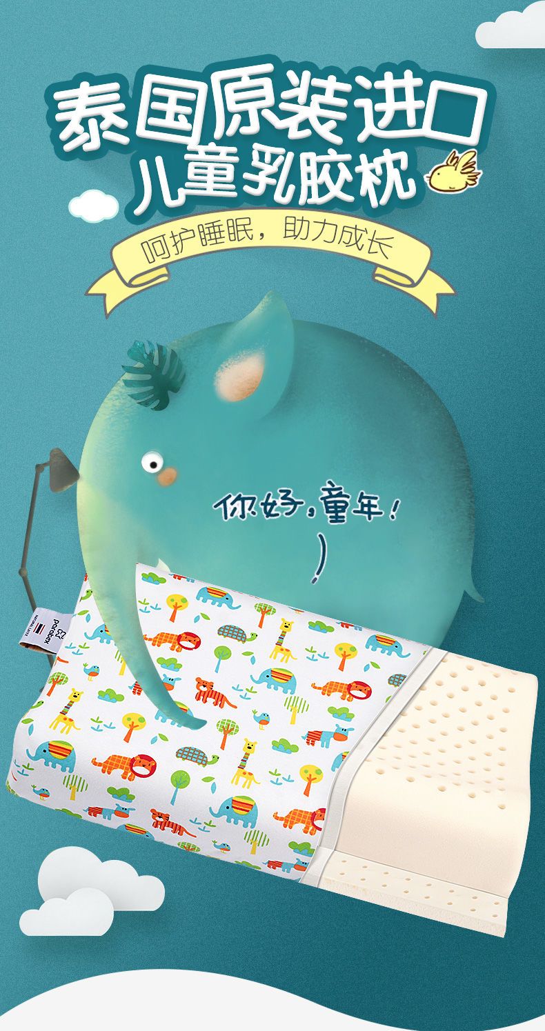Paratex 泰国原装进口天然儿童乳胶枕头宝宝定型枕学生枕小孩卡通