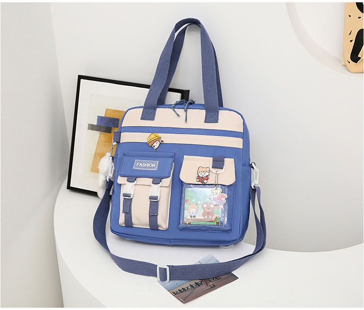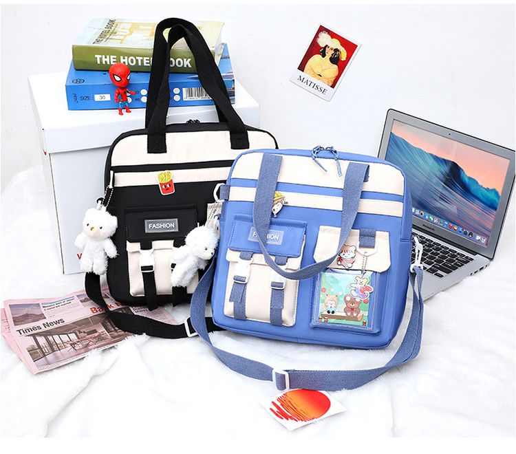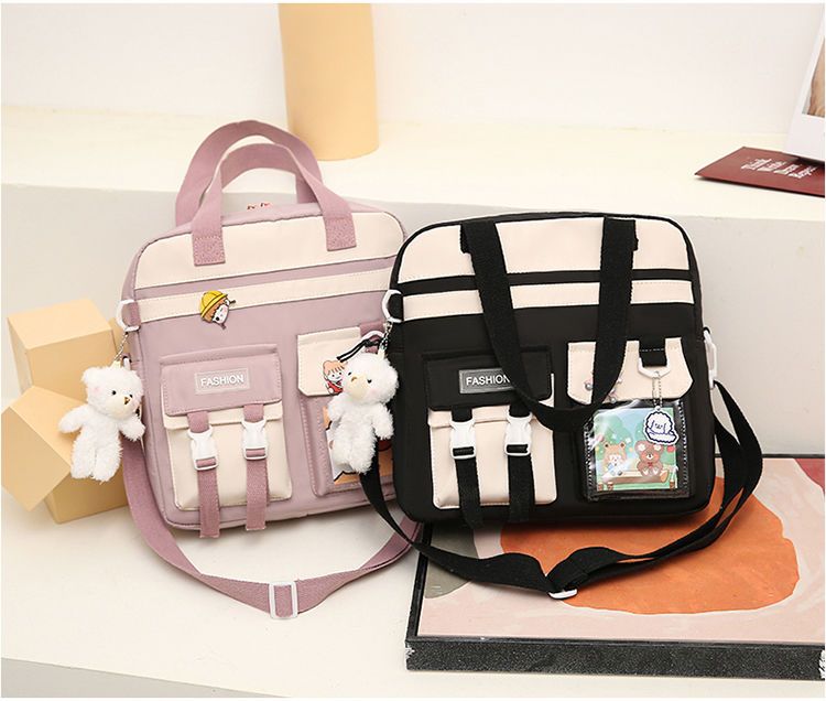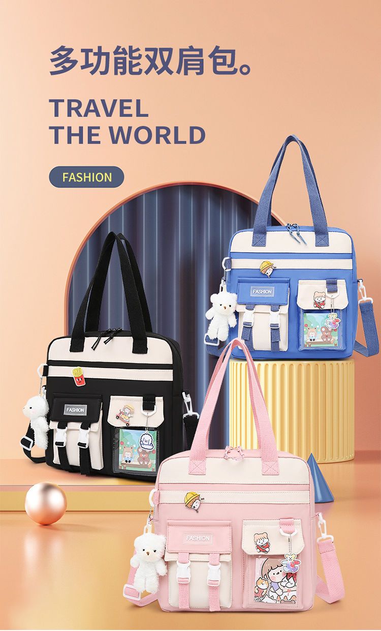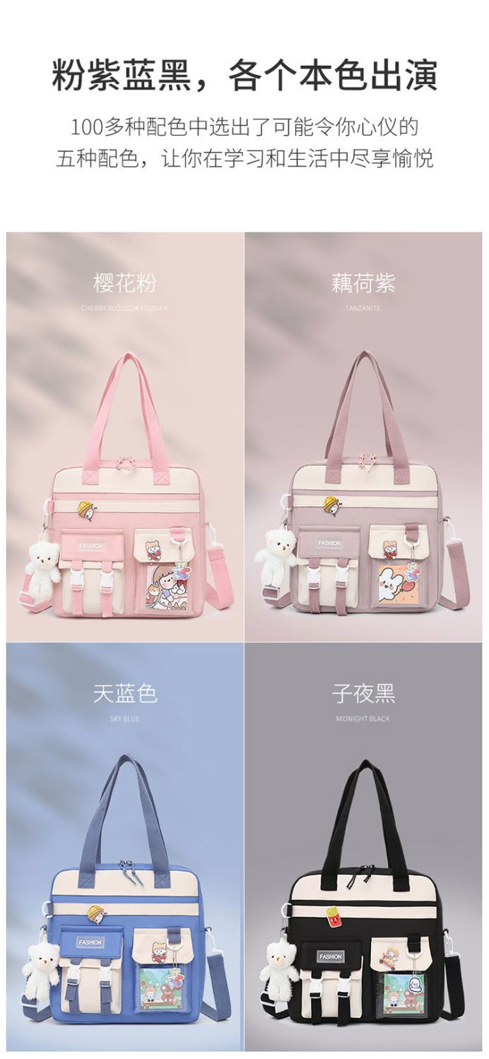 儿童帆布手拎包小学生手提单肩补习袋初高中可双肩补课包撞色斜挎