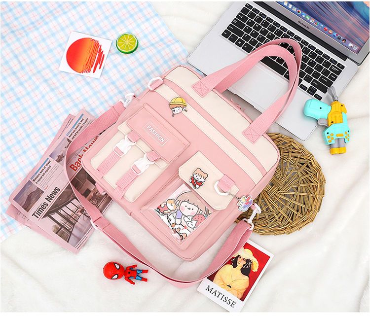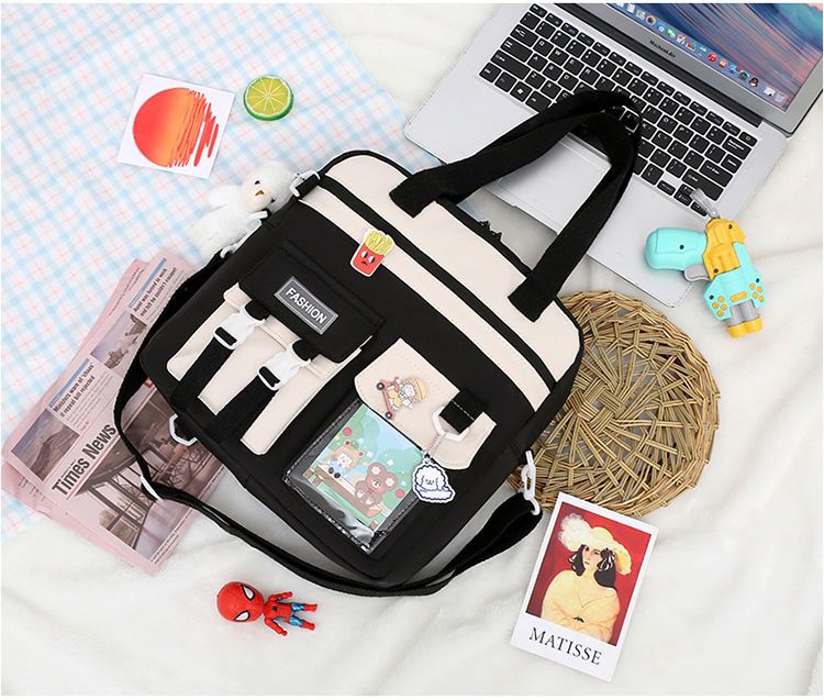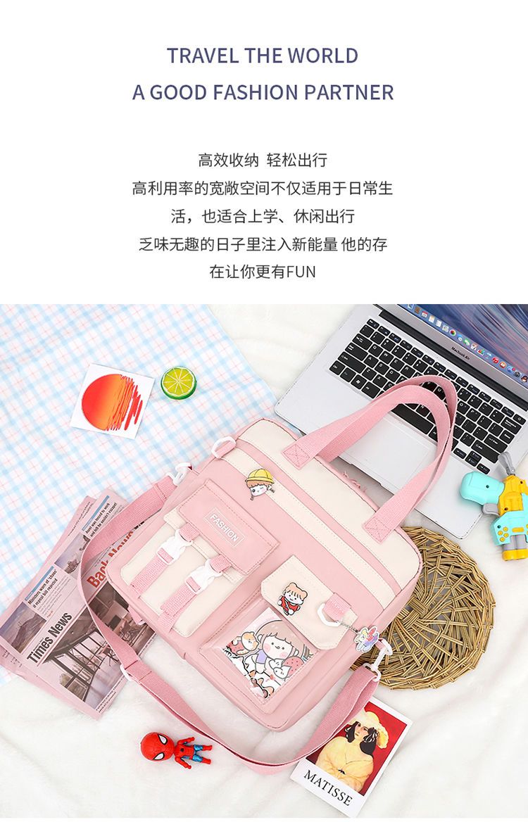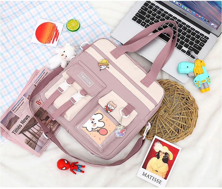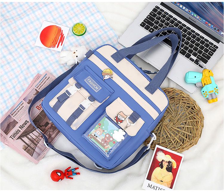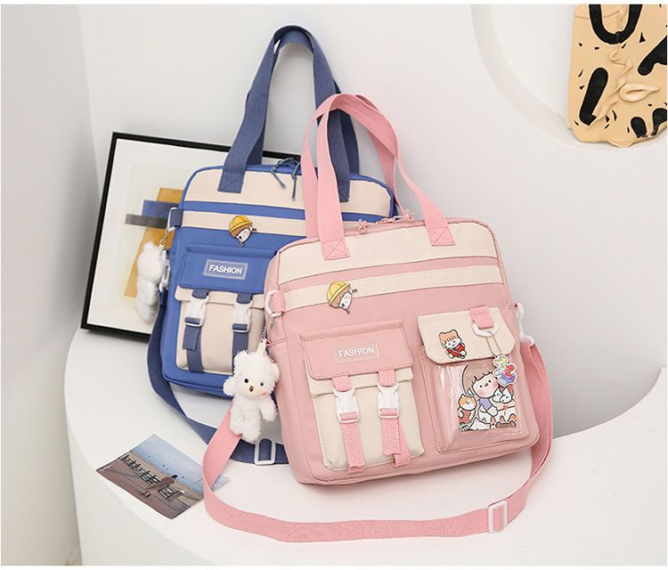 儿童帆布手拎包小学生手提单肩补习袋初高中可双肩补课包撞色斜挎