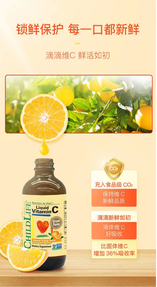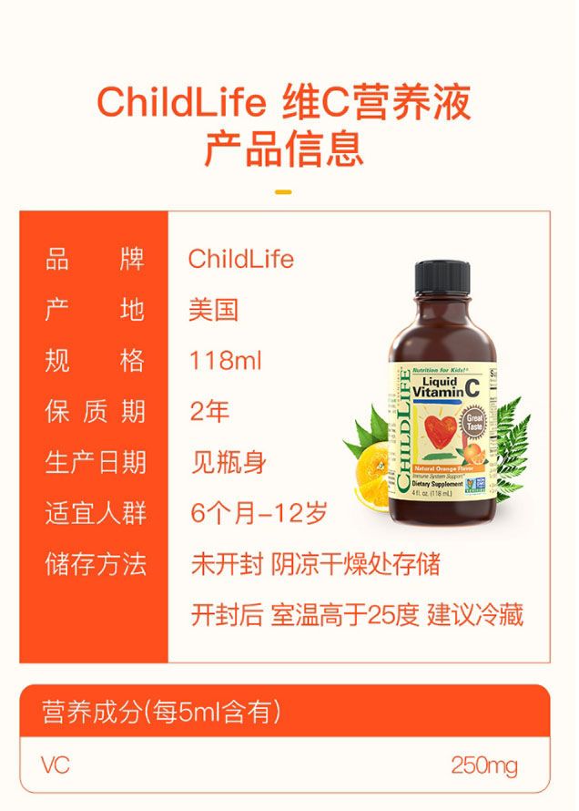 ChildLife维生素VC营养液婴幼儿童维C强抵抗力防感染118ml