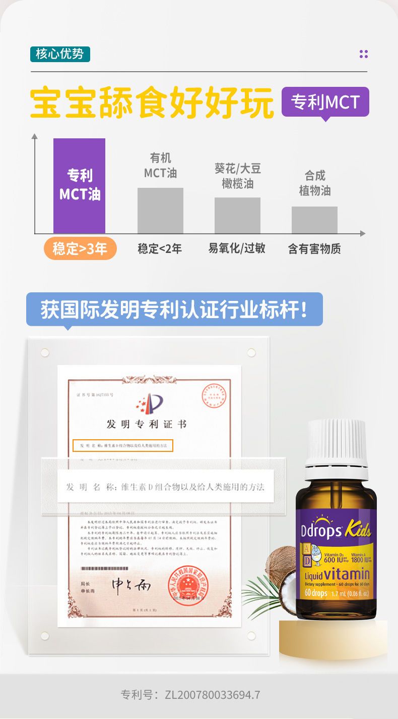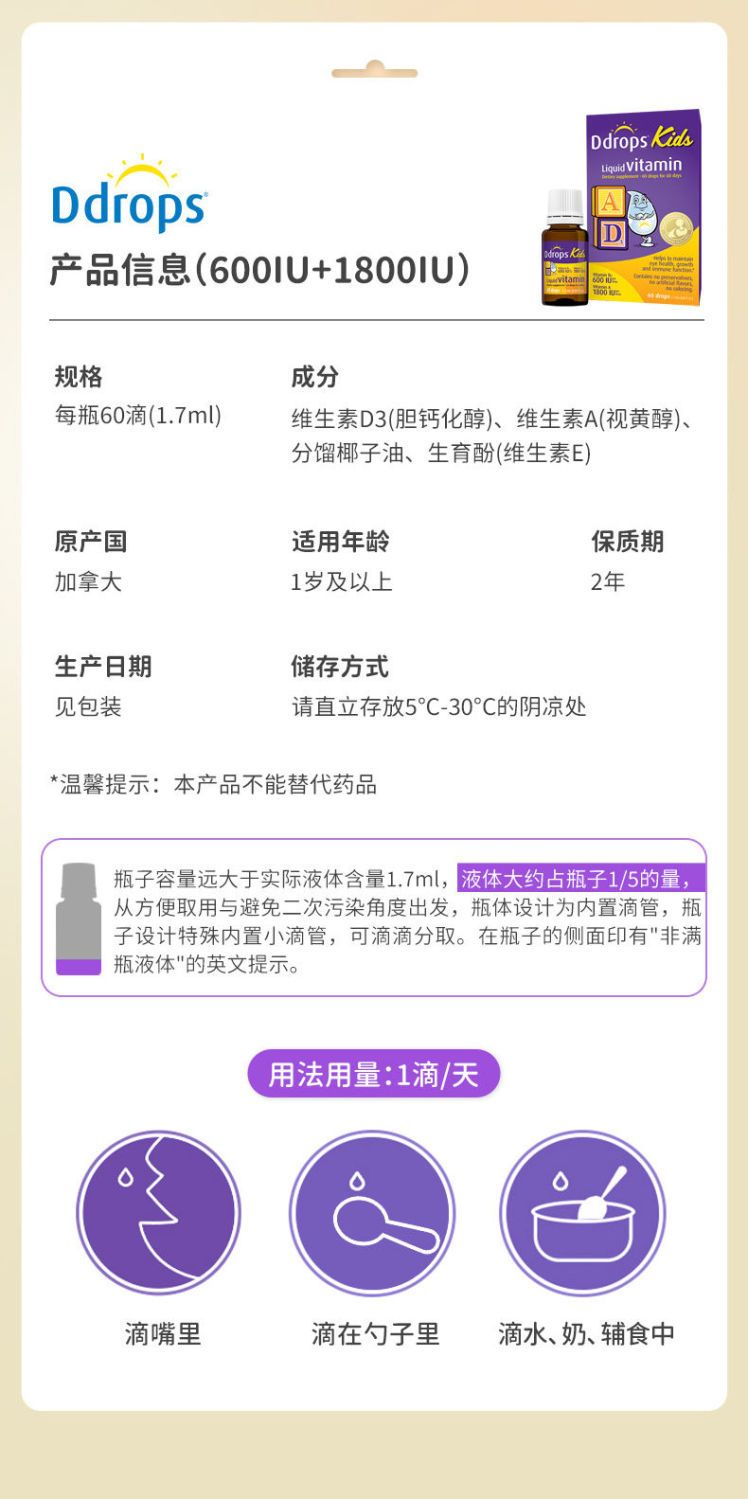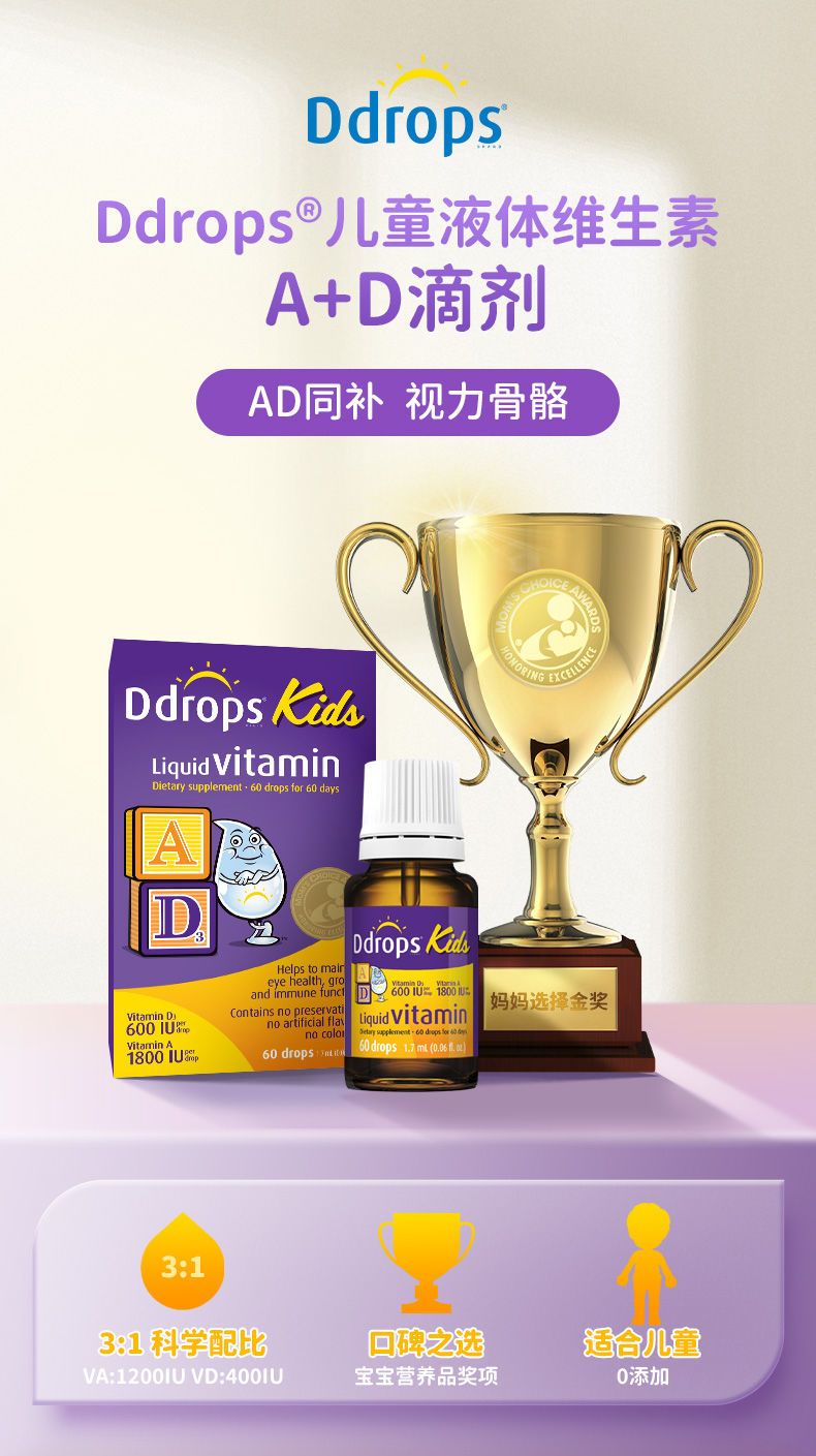 Ddrops儿童ad滴剂一岁以上婴幼儿补钙ad非胶囊d3婴儿宝宝维生素AD