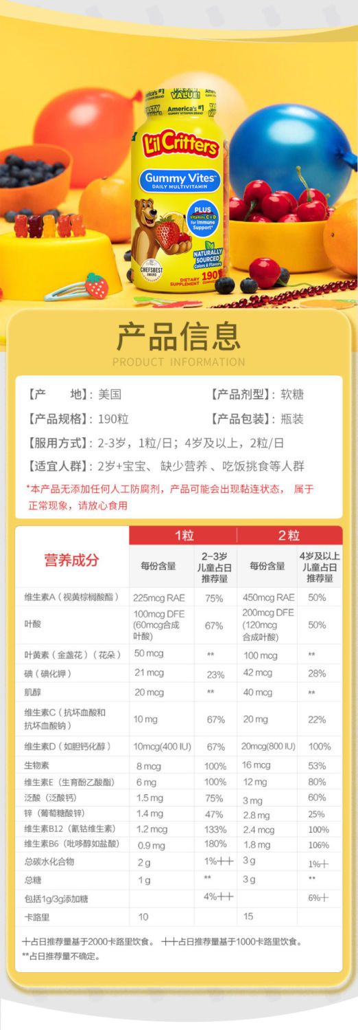 L'il Critters丽贵儿童复合维生素小熊糖190粒效期至23年4月