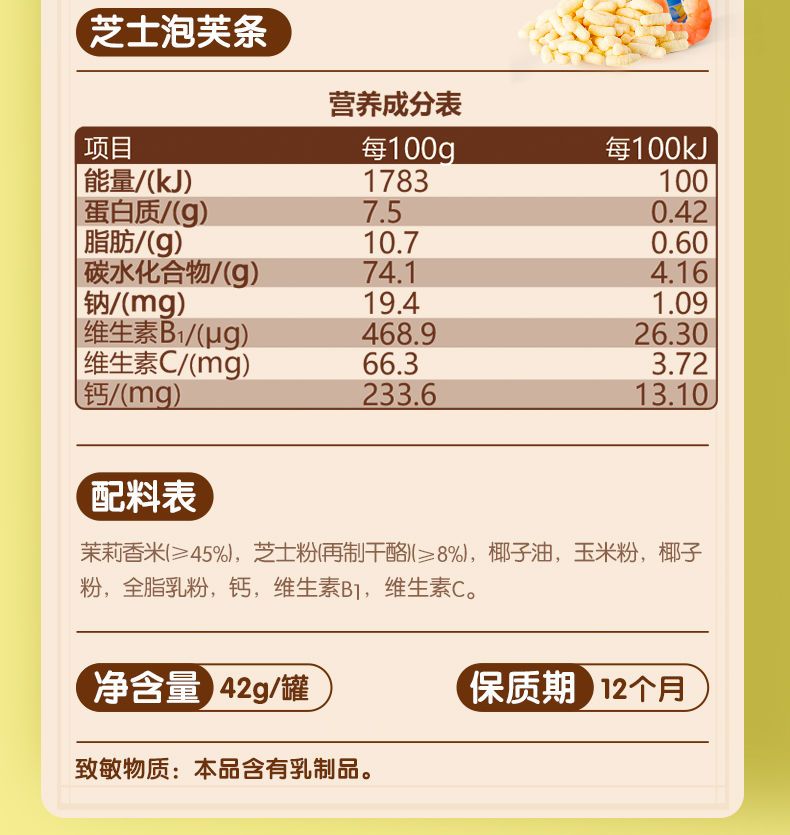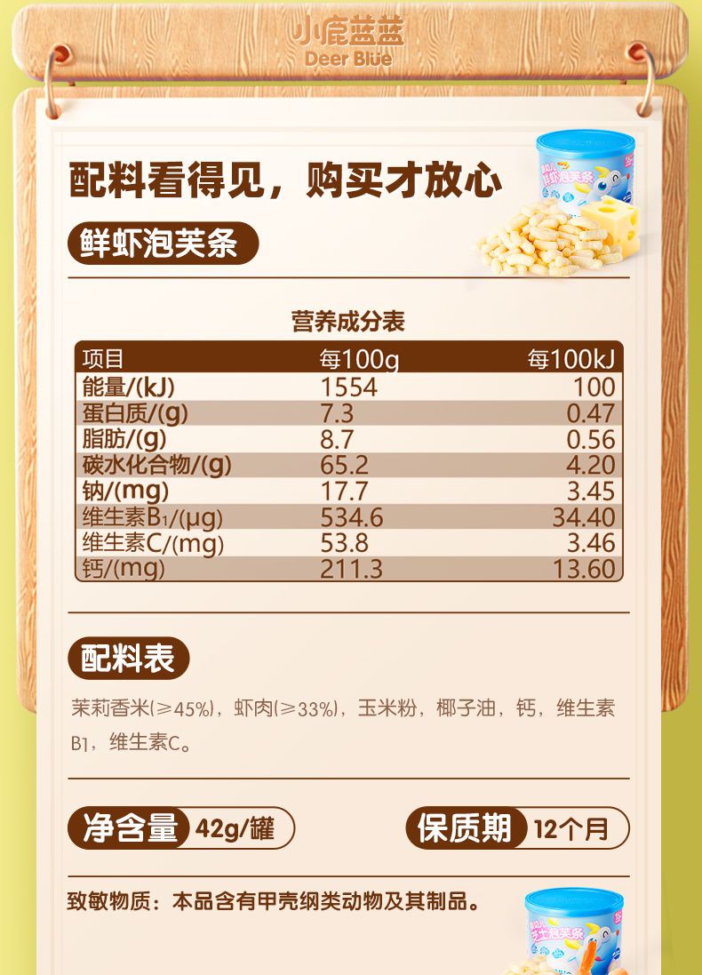 【小鹿蓝蓝推荐_婴儿泡芙条42g】6个月宝宝零食手指泡芙条婴幼儿