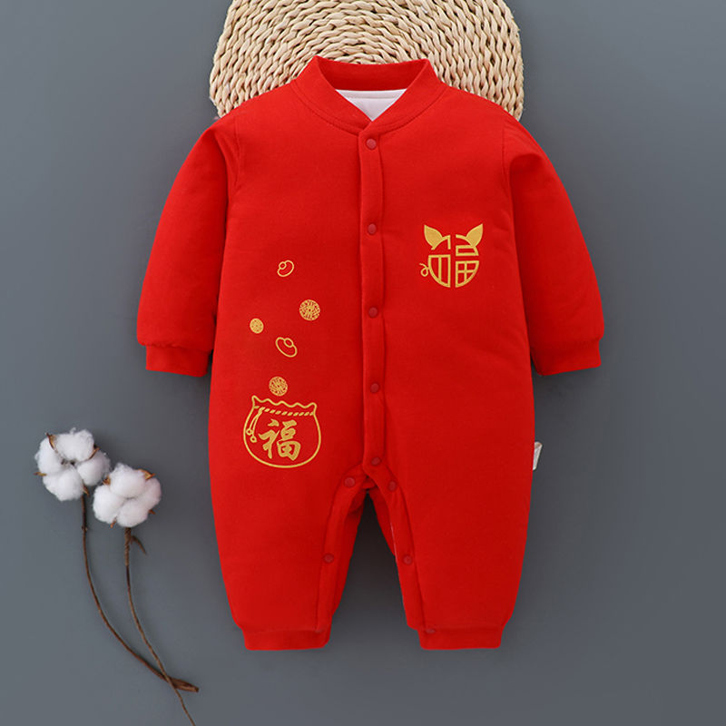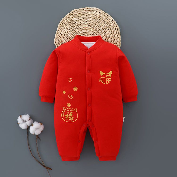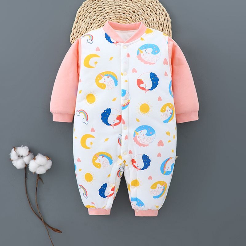 新生婴儿连体衣秋冬季加厚夹棉男女宝宝衣服初生冬装套装睡衣棉衣