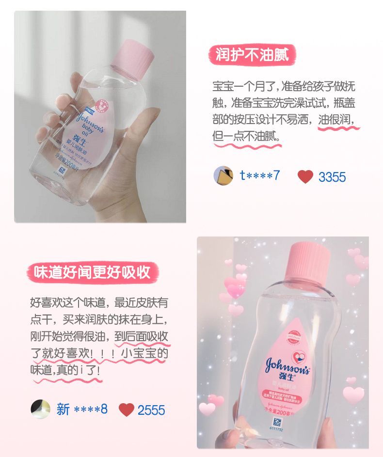 强生婴儿润肤油新生婴儿童宝宝专用按摩油去头垢保湿不油腻卸妆油