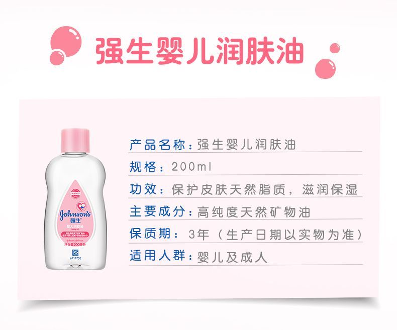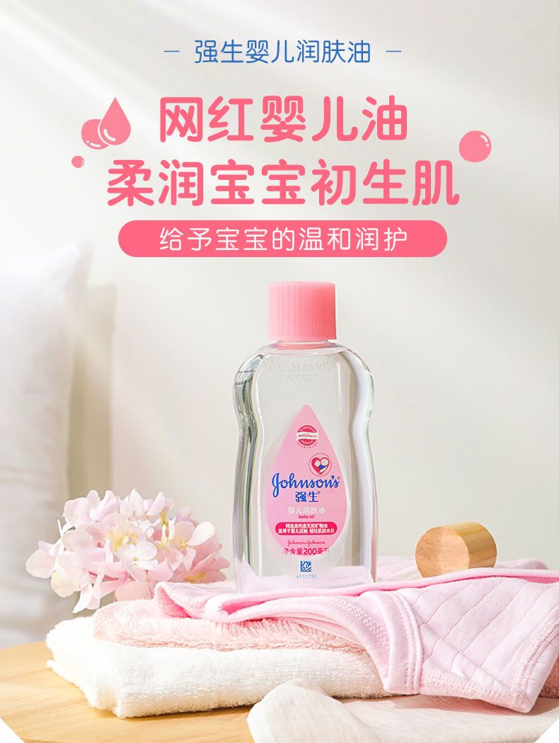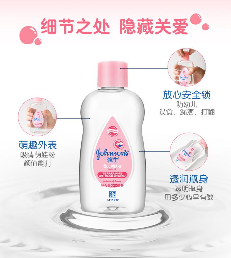 强生婴儿润肤油新生儿童宝宝按摩油软化头垢不油腻保湿防皴裂