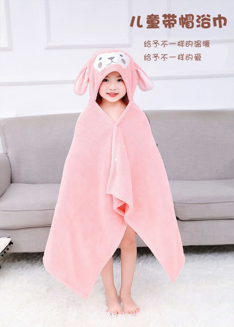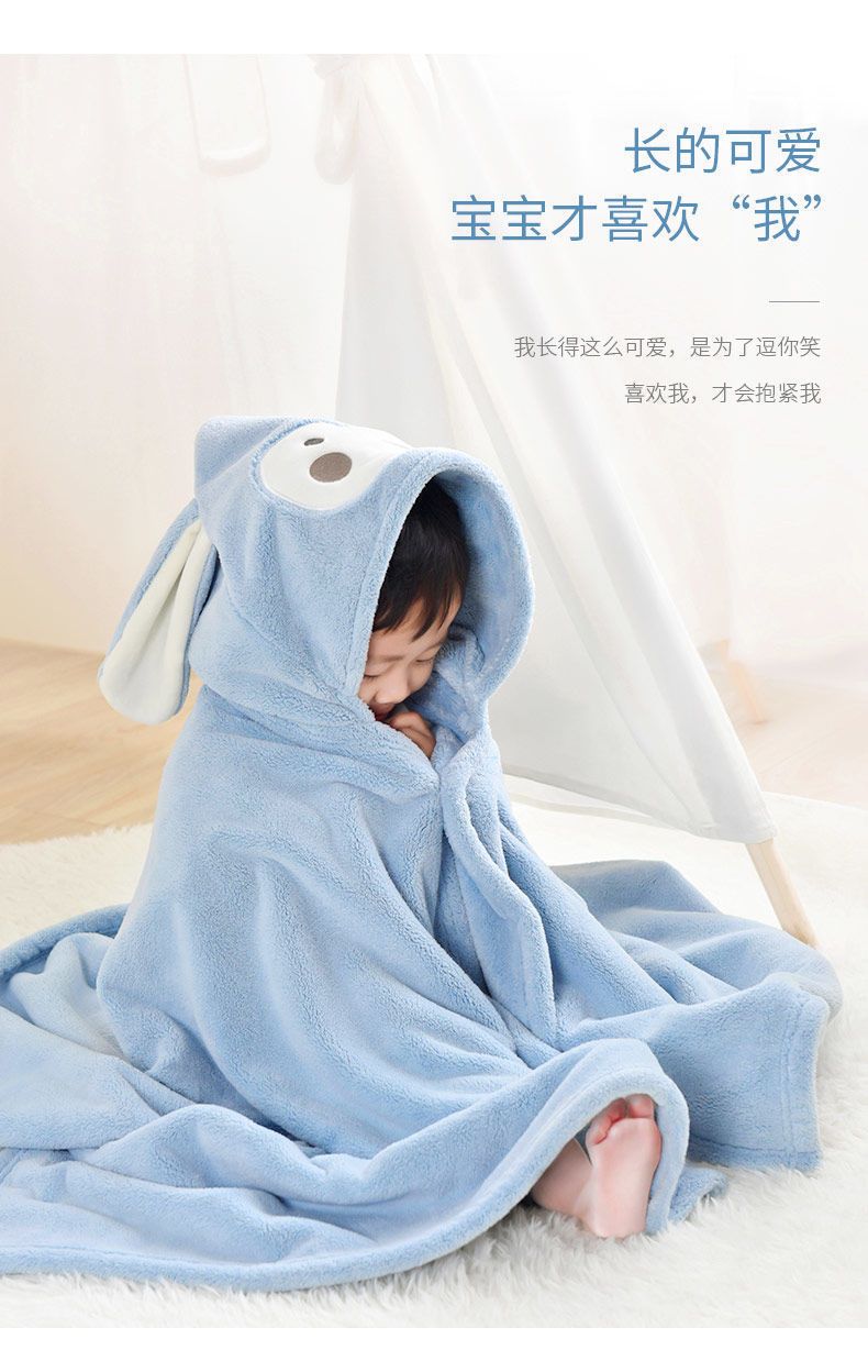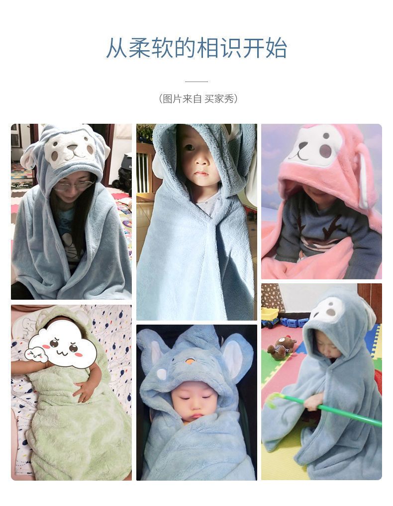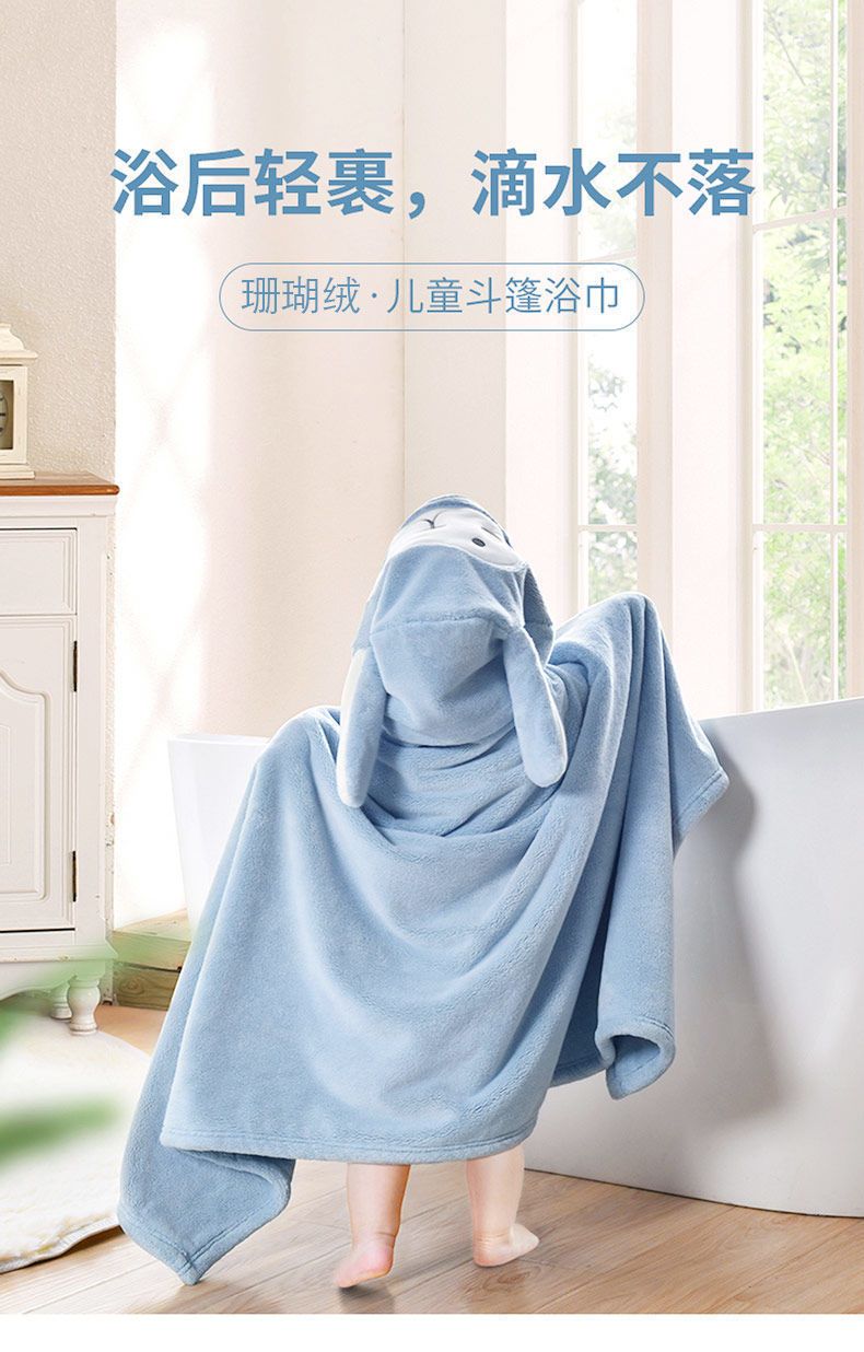 新生婴儿浴巾洗澡珊瑚绒婴儿披风斗篷儿童带帽比纯棉吸水柔软浴袍