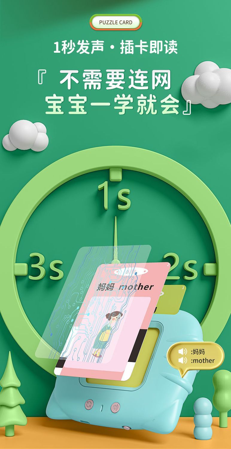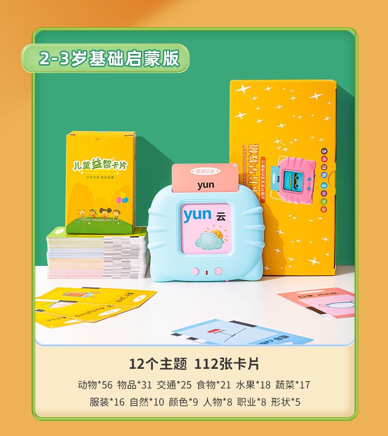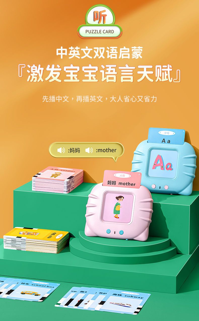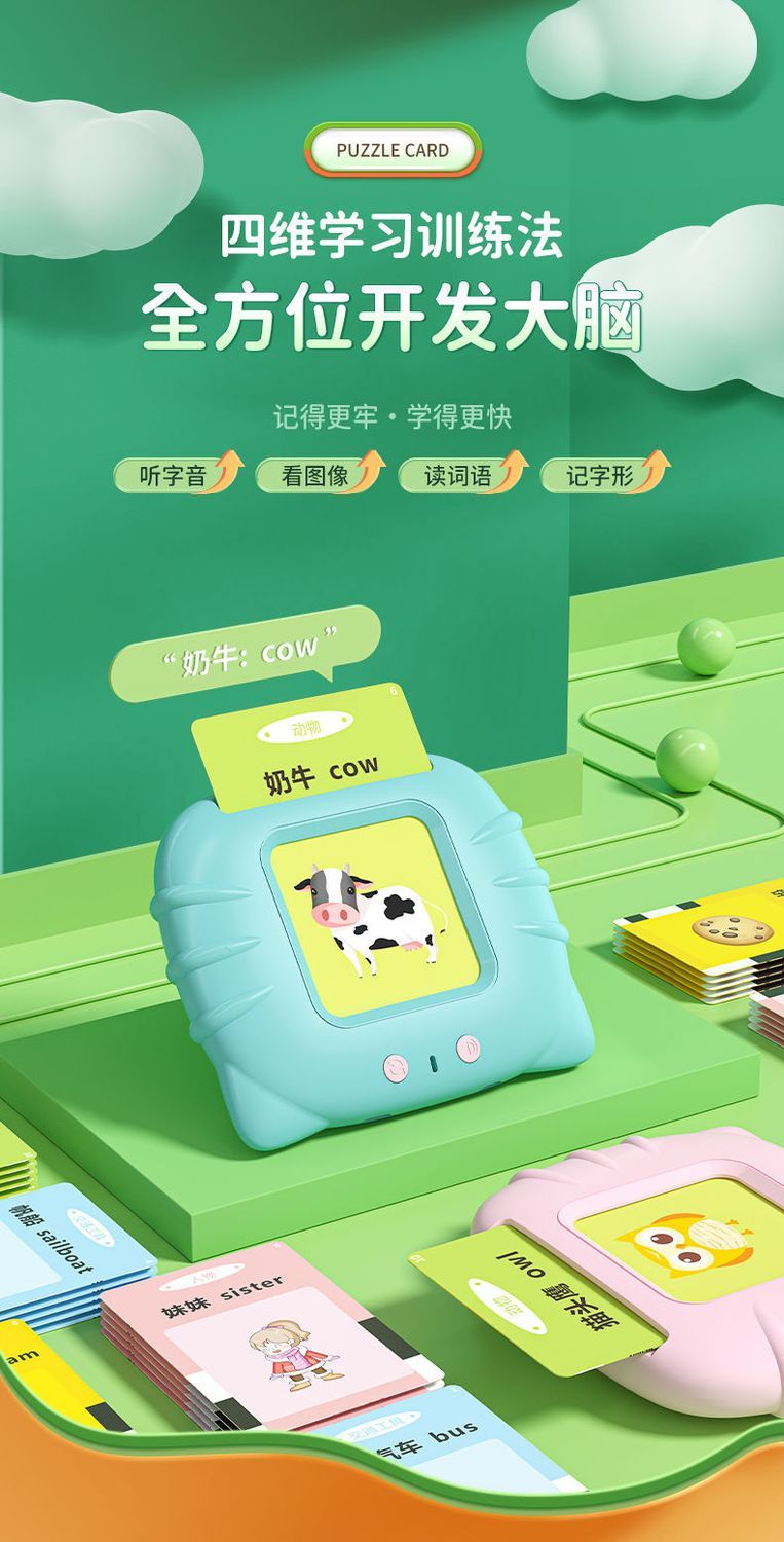 幼儿童早教机卡片0-1-3-6岁双语启蒙有声识字益智玩具插卡学习机