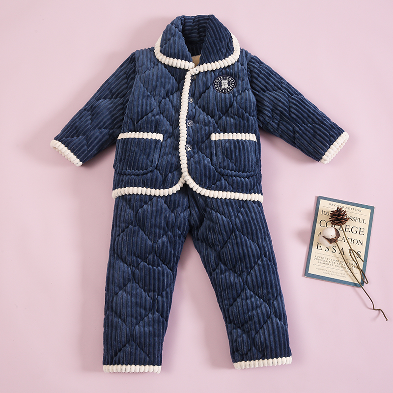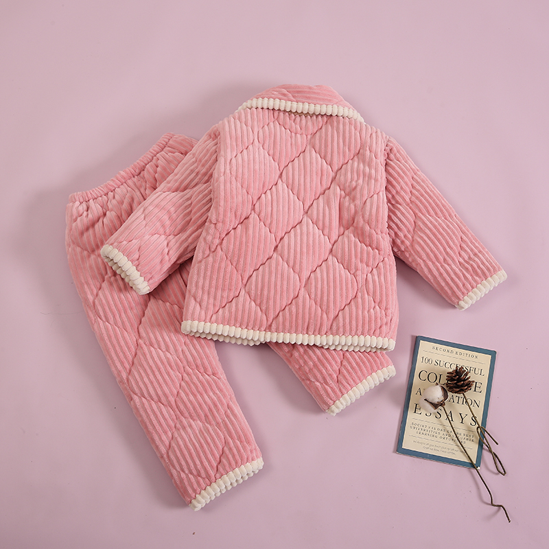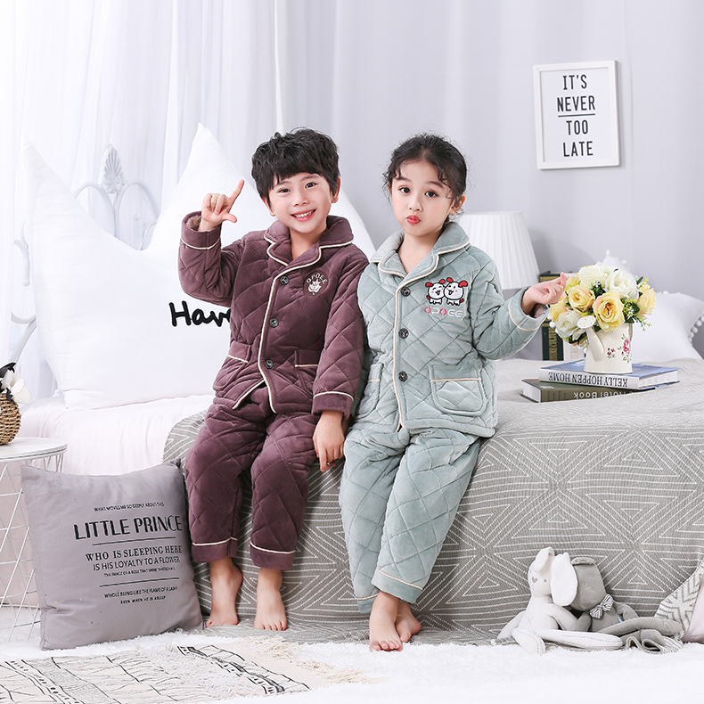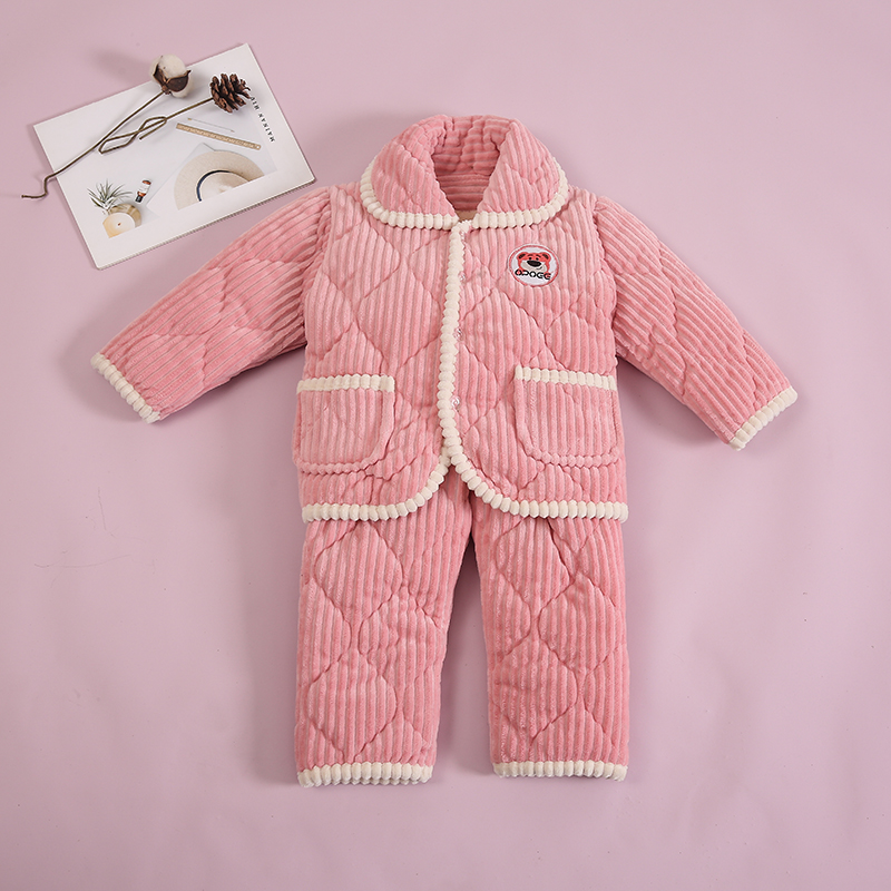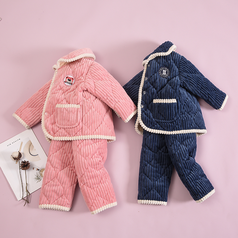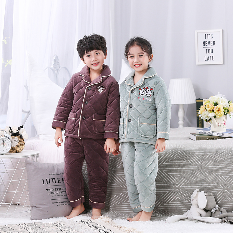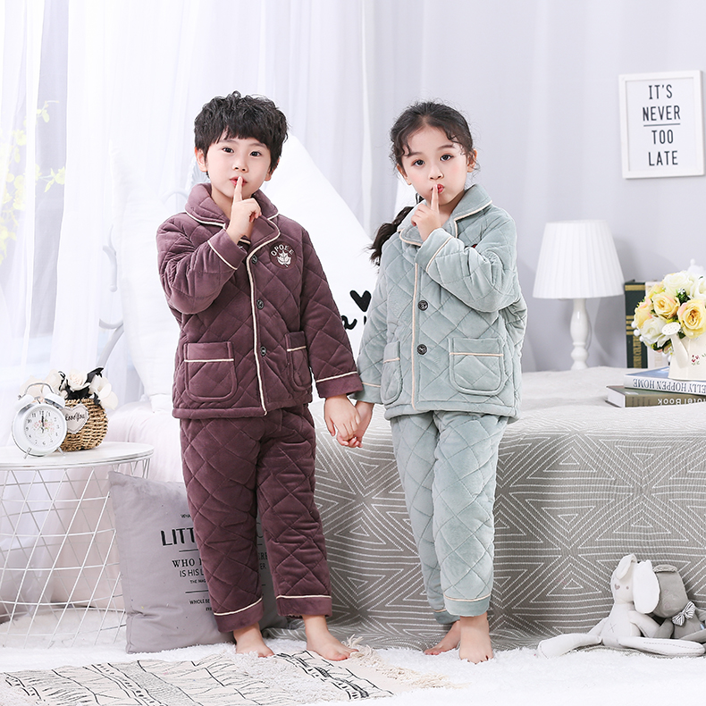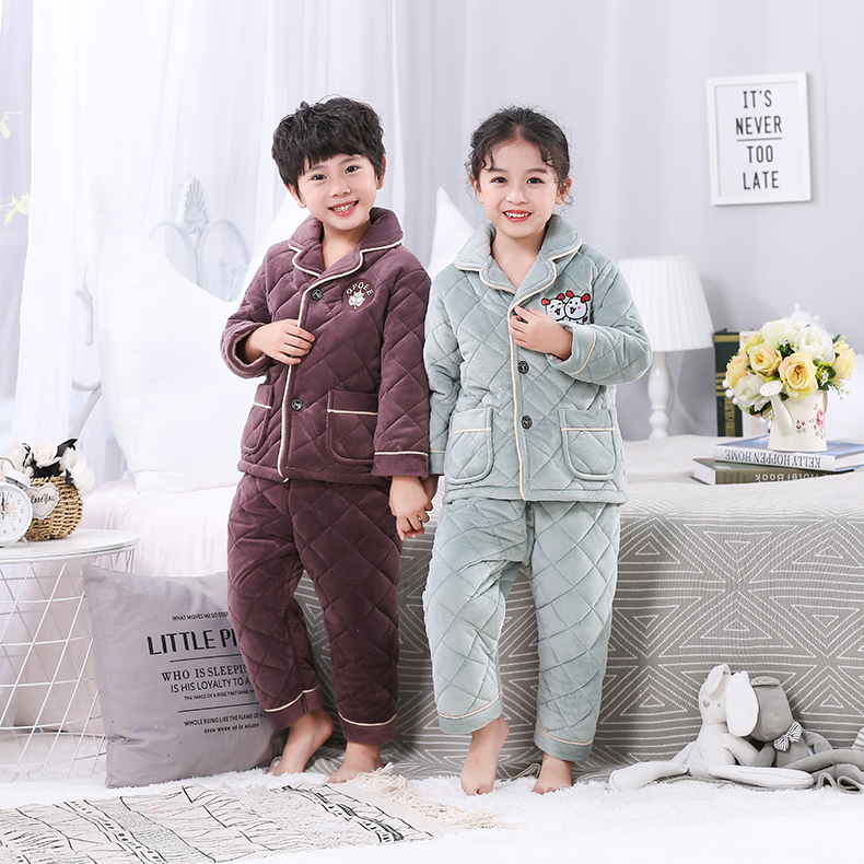 opoee男童宝宝睡衣加厚秋冬法兰绒女童加绒三层棉保暖儿童家居服