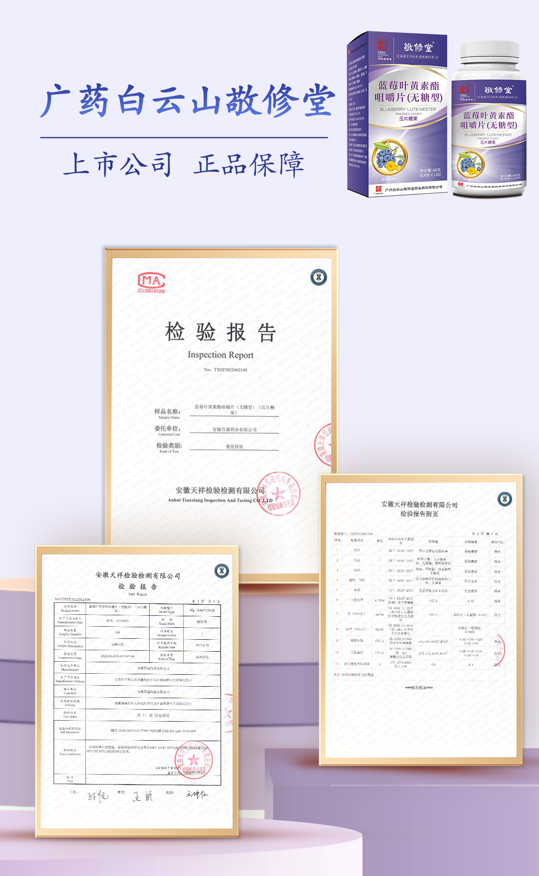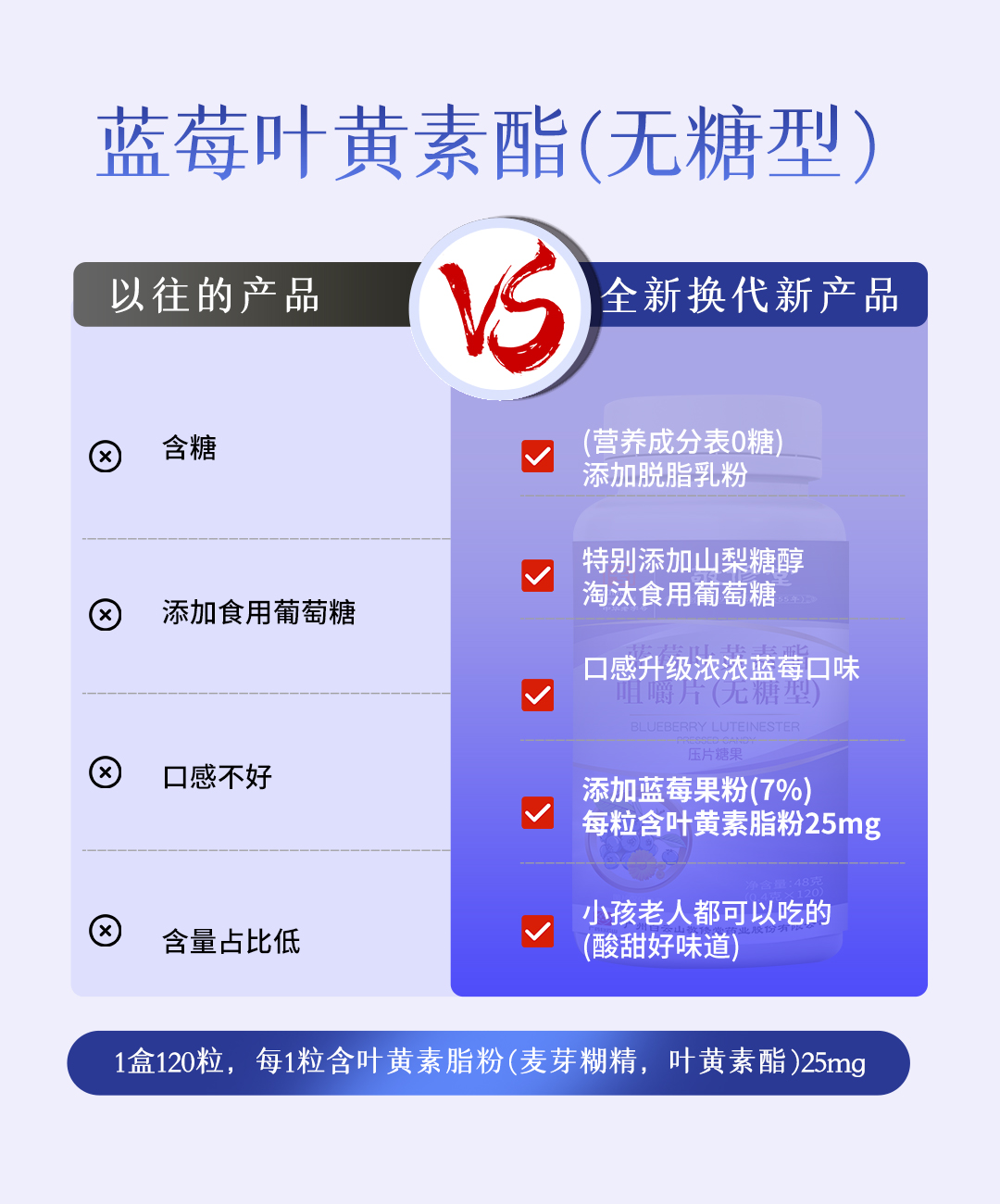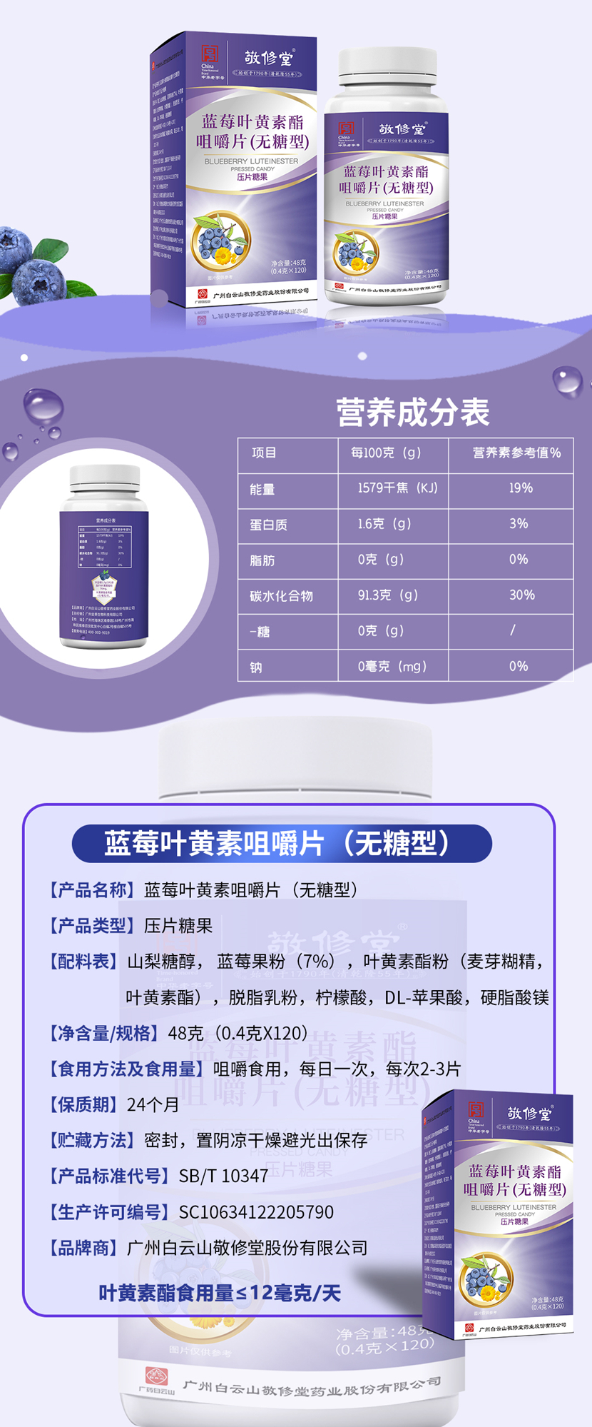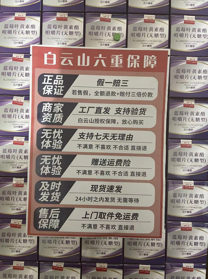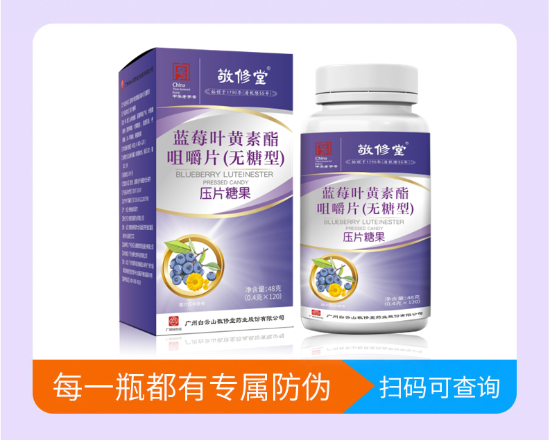 广药白云山(无糖型)蓝莓叶黄素酯咀嚼片 中华老字号 1瓶 120粒