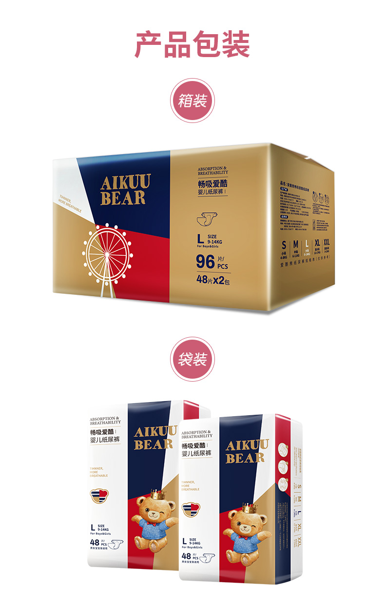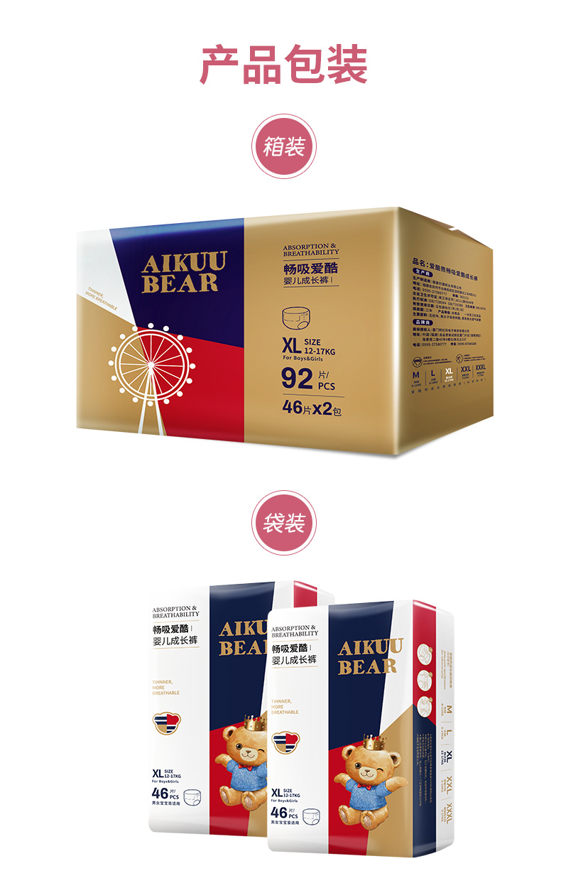 【直播间专享】爱酷熊医护级畅吸纸尿裤拉拉裤轻薄透气柔软亲肤