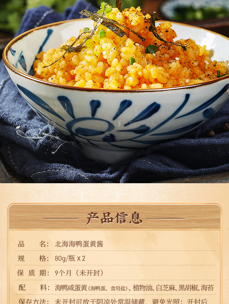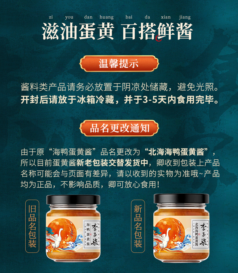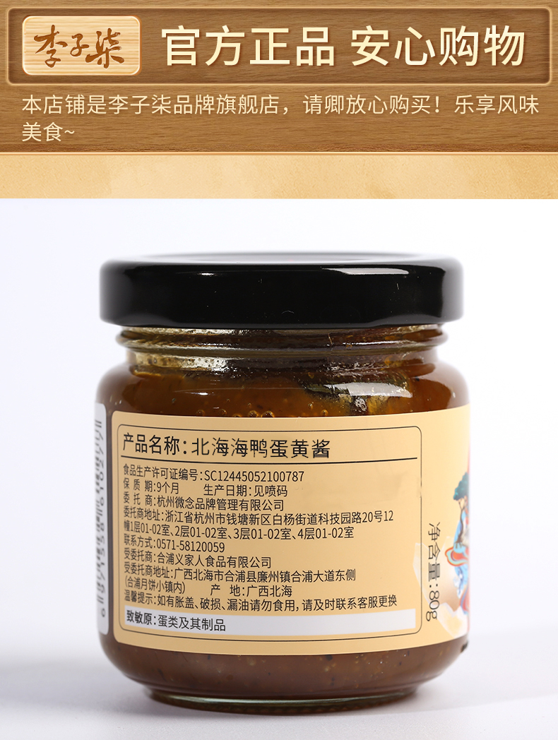 李子柒北海海鸭蛋黄酱咸蛋黄流沙酱80g*2罐装
