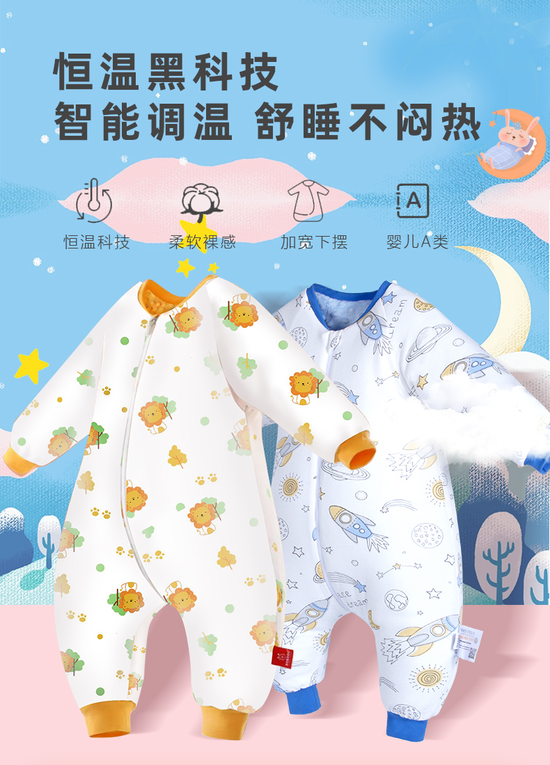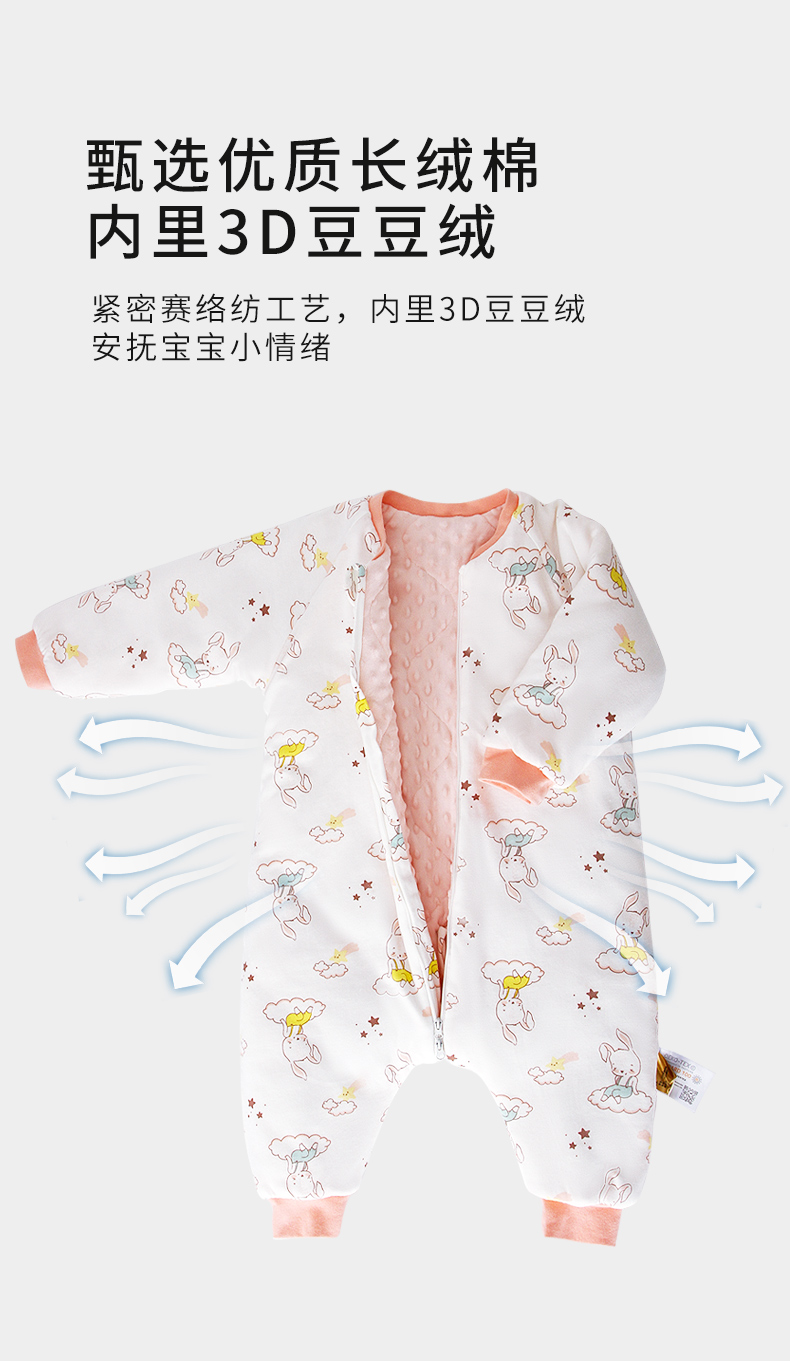 【卡伴】新生儿保暖睡袋豆豆绒防惊跳加厚分腿防踢冬睡袋