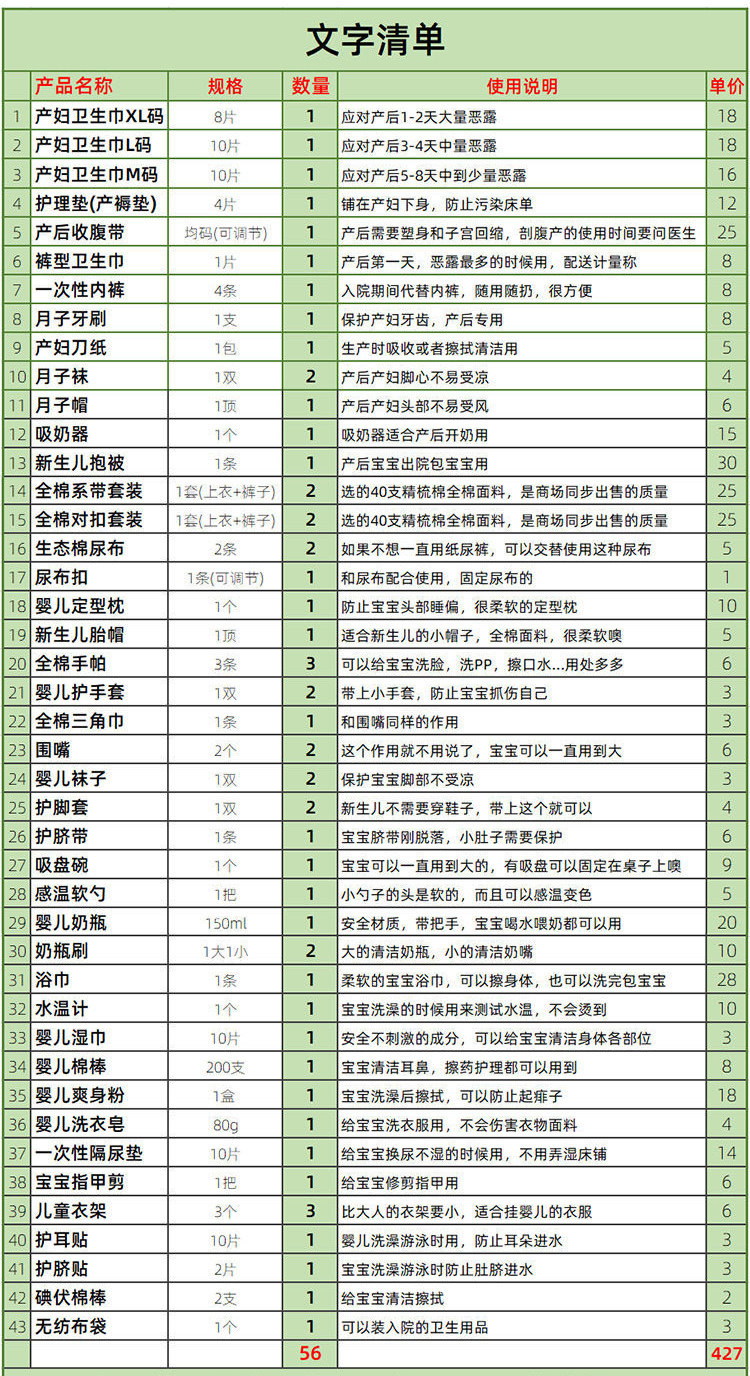 待产包冬春季全套入院母子备产包全套生孩子婴儿月子用品必备