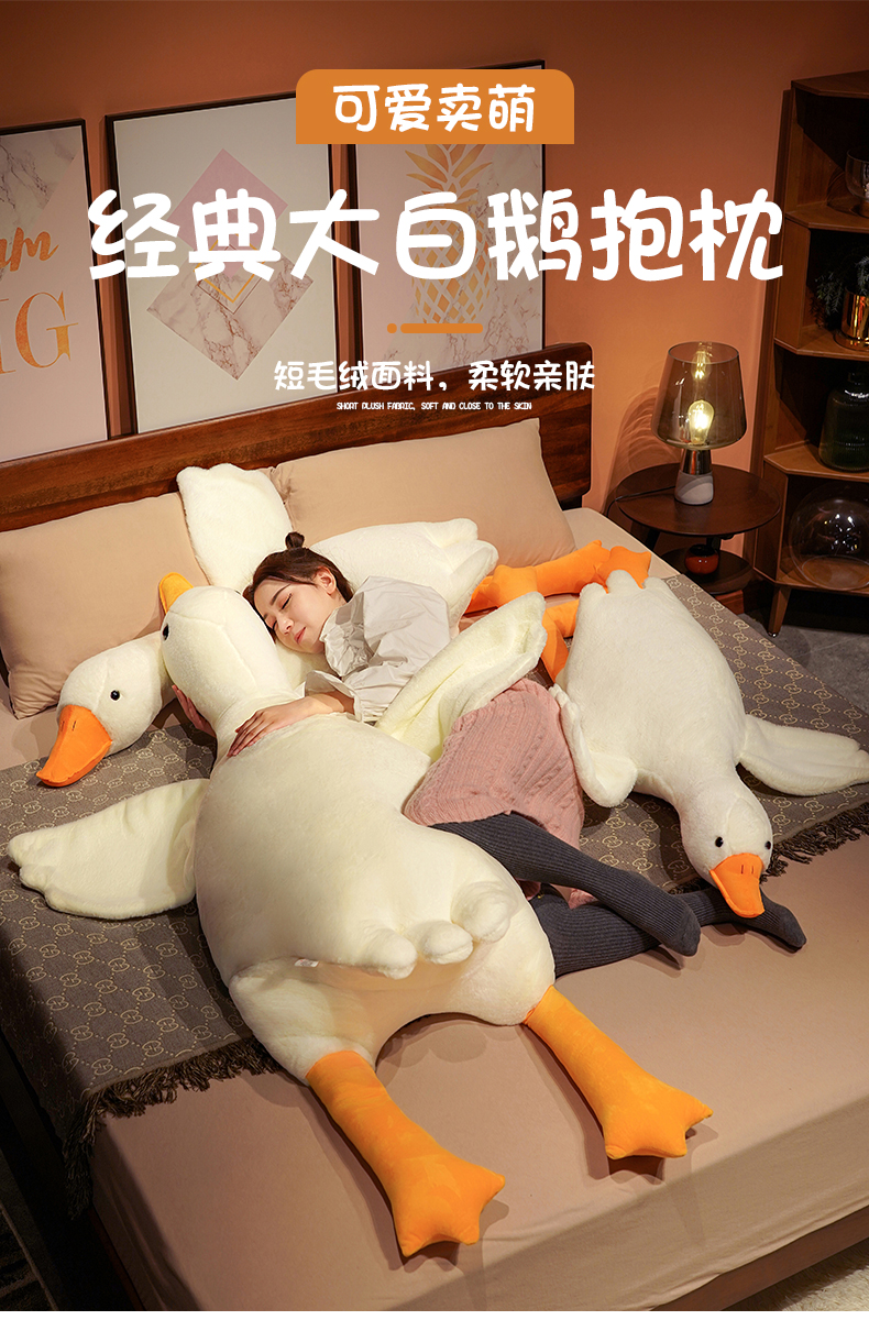 可爱大白鹅抱枕毛绒玩具大鹅玩偶抱睡公仔布娃娃女生床上睡觉夹腿