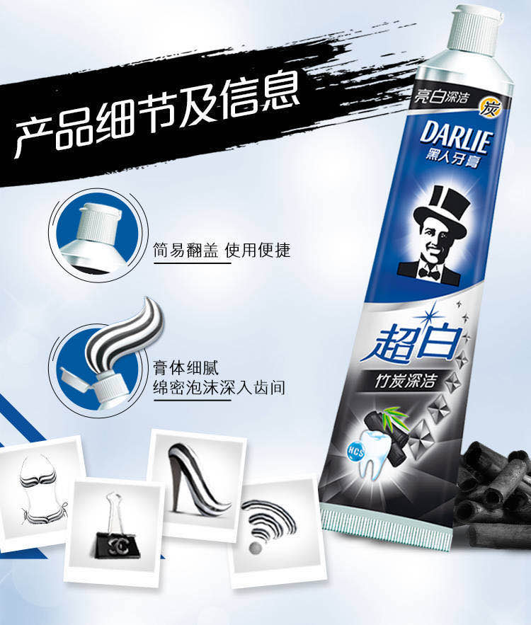 DARLIE好来(原黑人)牙膏190g超白竹炭深洁碳丝软毛牙刷清新口气亮