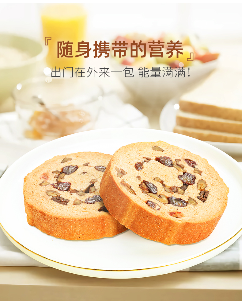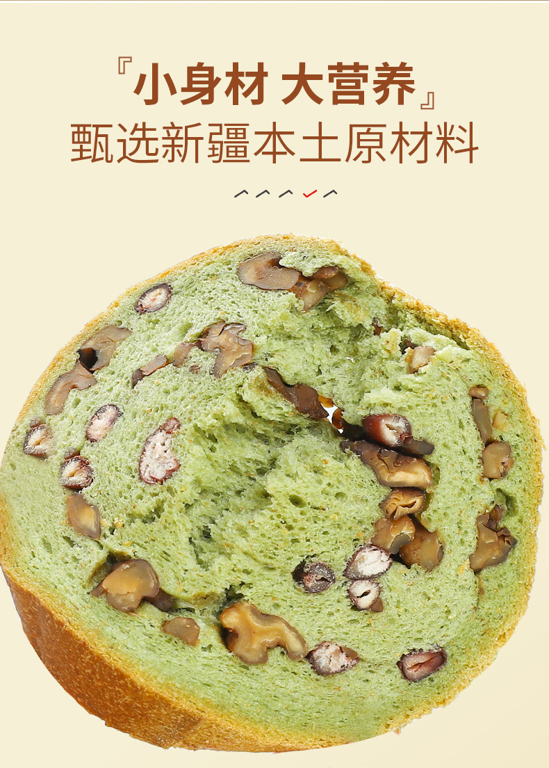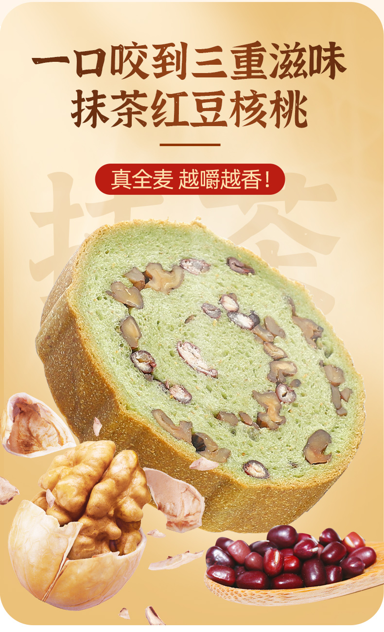 【信合味达】全麦抹茶红豆车轮面包饱腹营养核桃仁切片面包450g