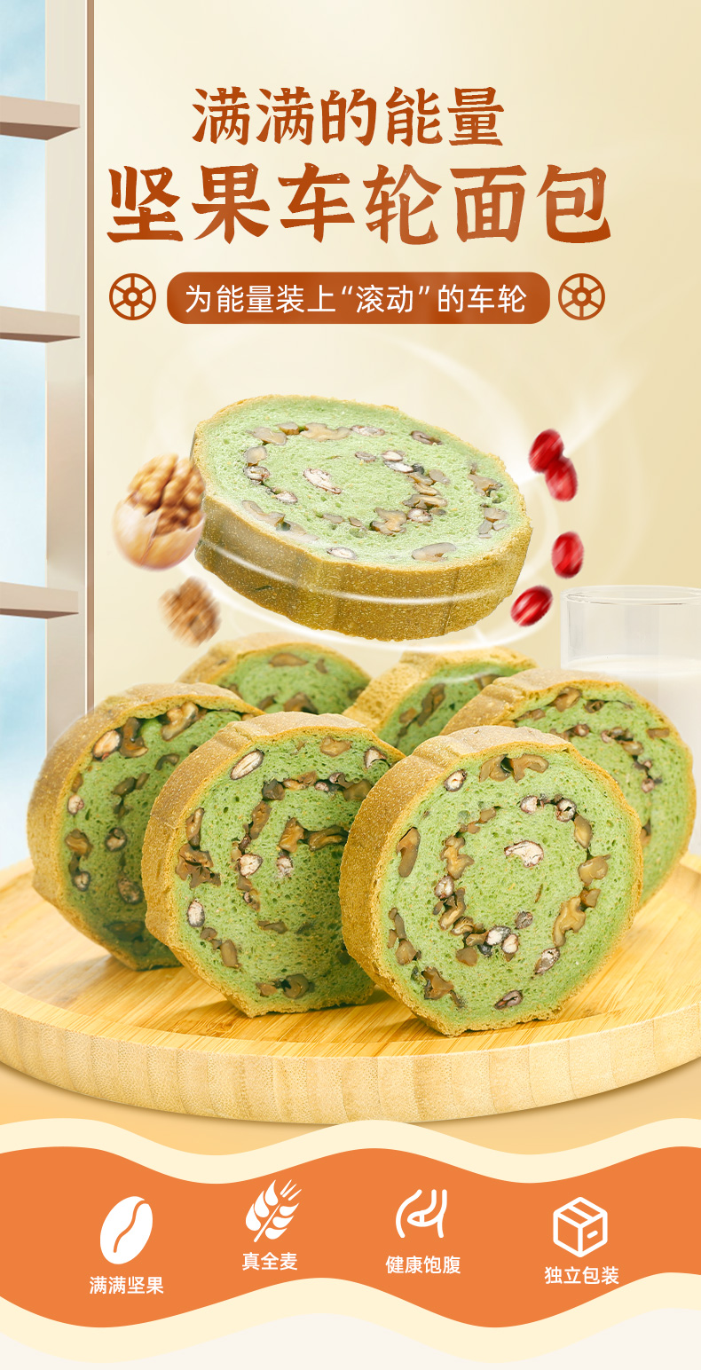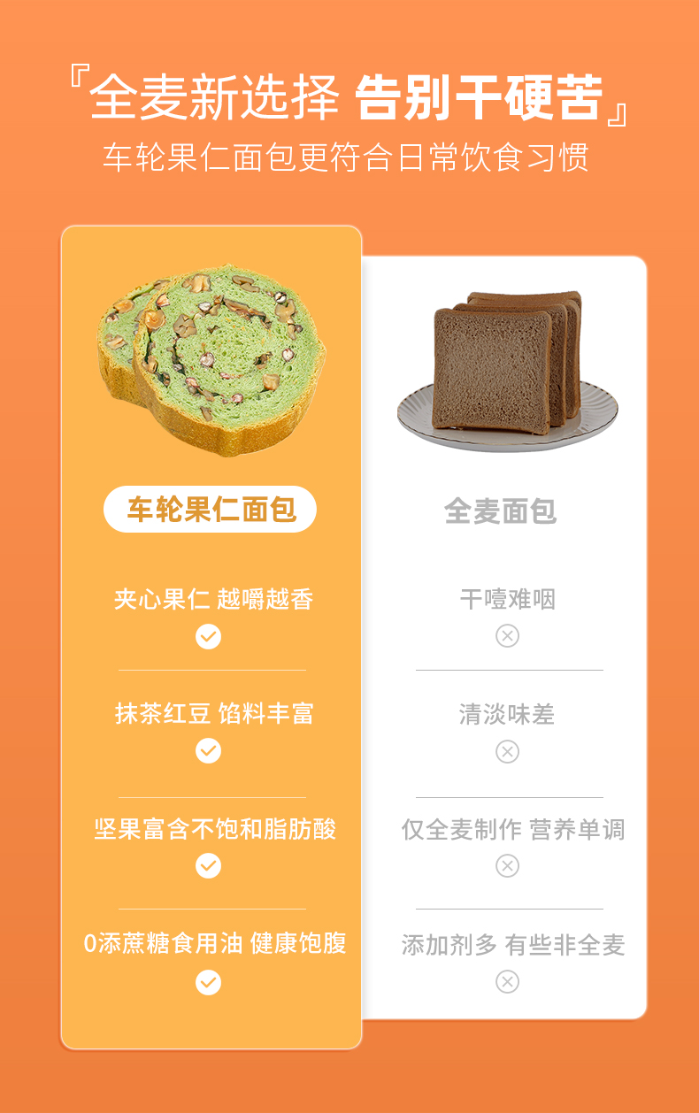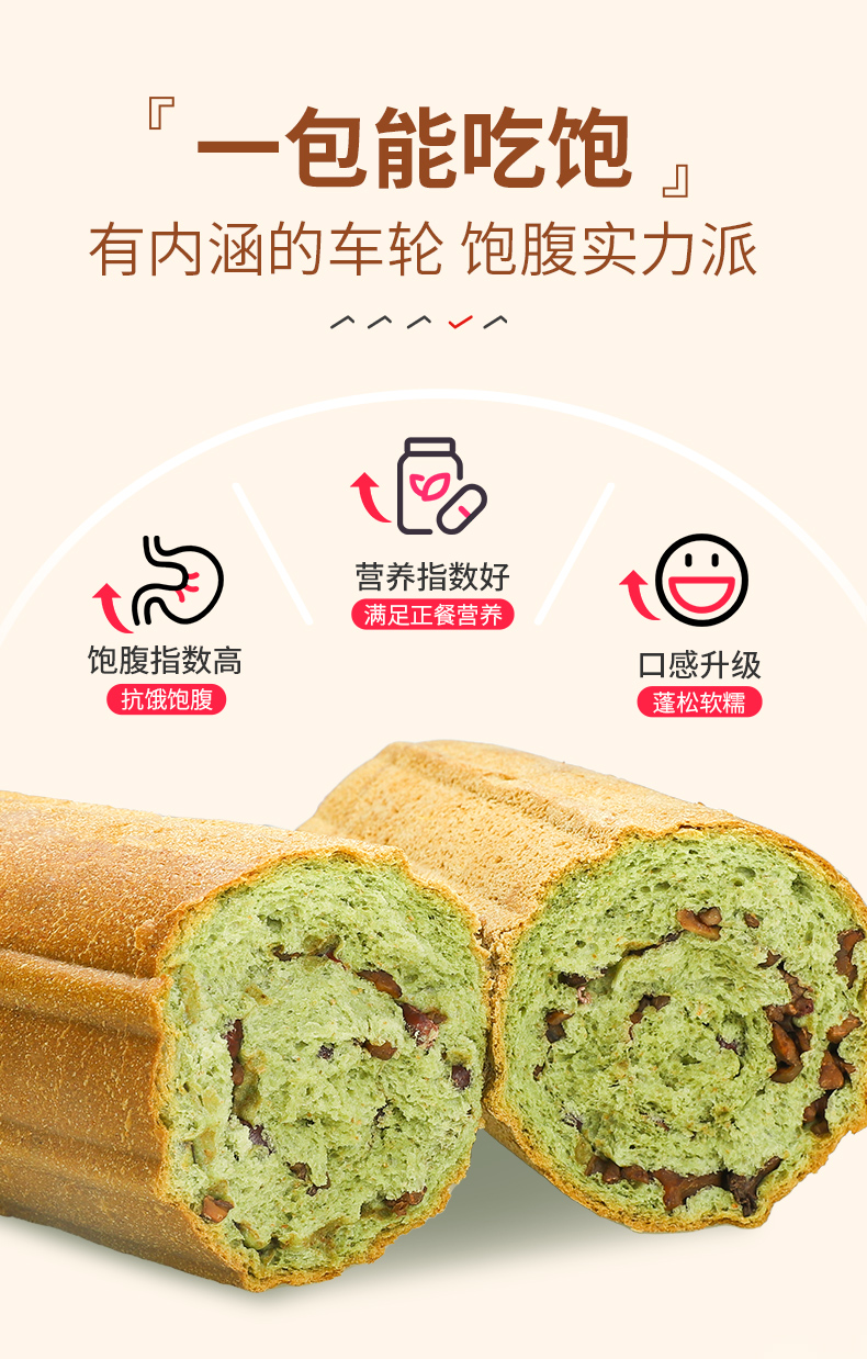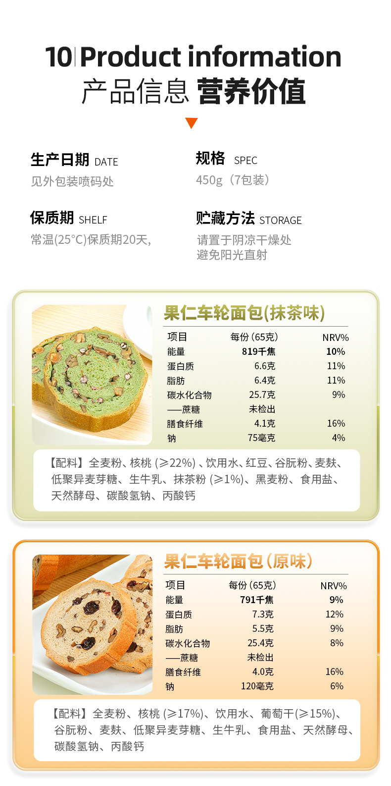 果仁车轮面包450g(抹茶味)*1+果仁车轮面包450g(原味)*1