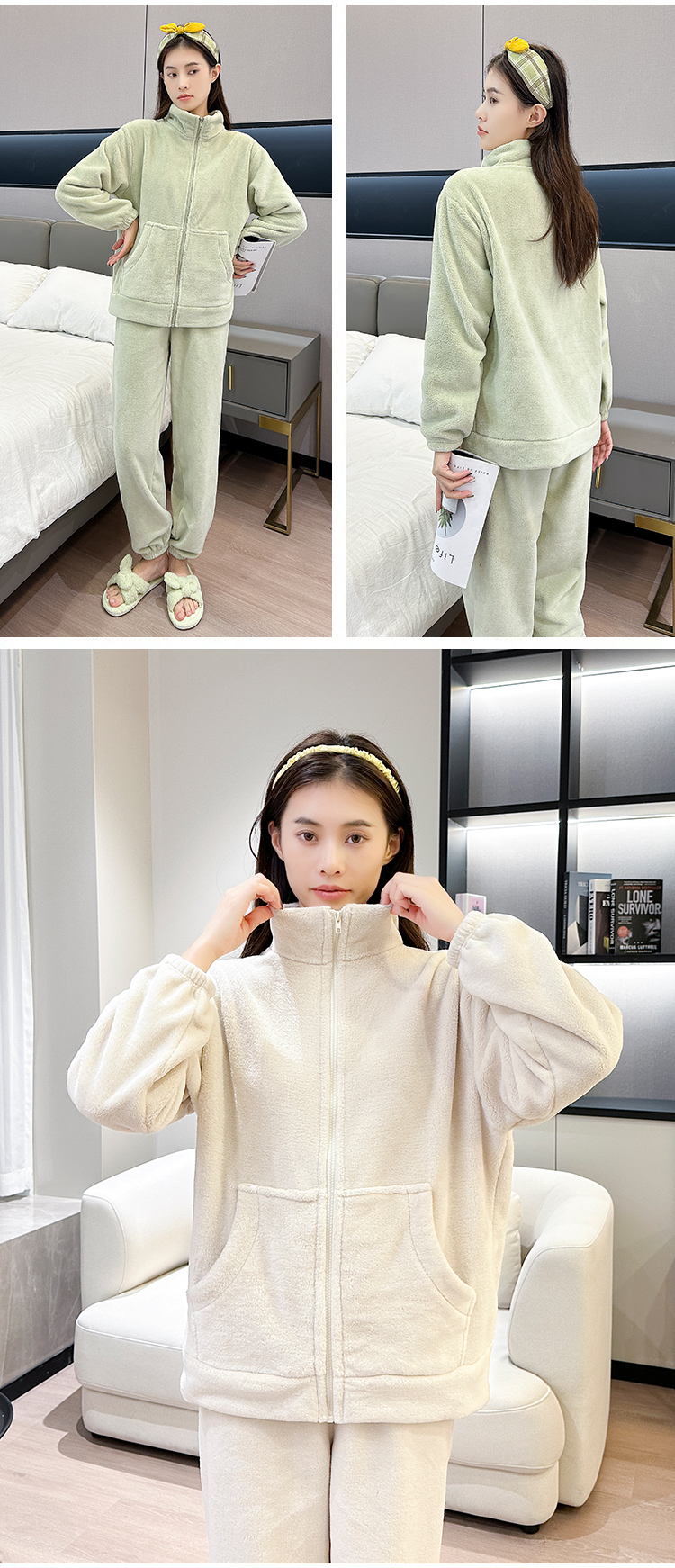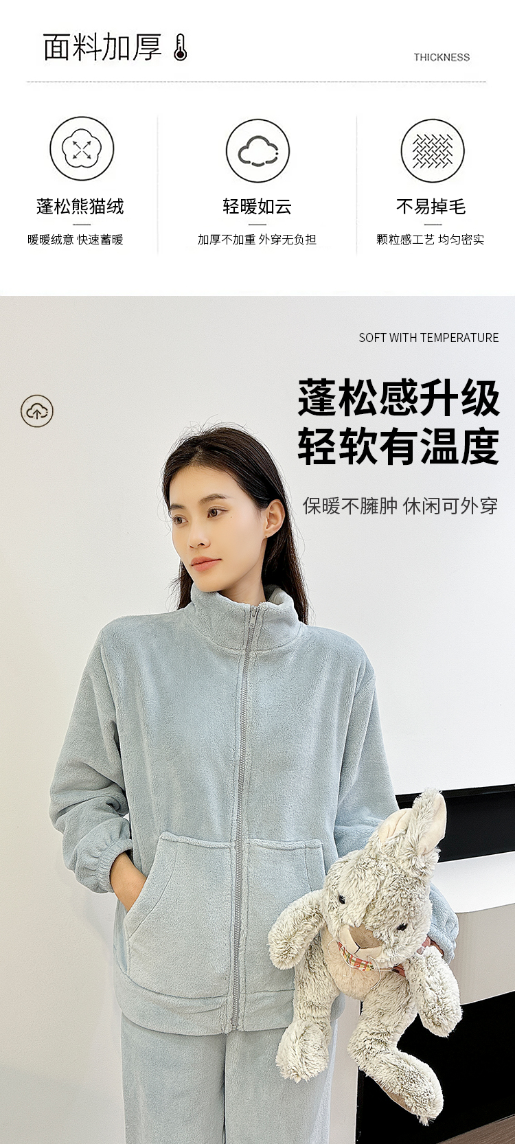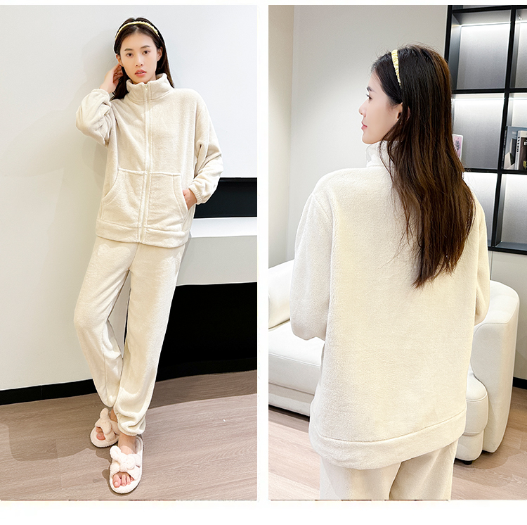 [保暖又好看]【思思姐专享】北极绒家居休闲套装睡衣套装保暖家居服拉链时尚[去首页领现金红包]
