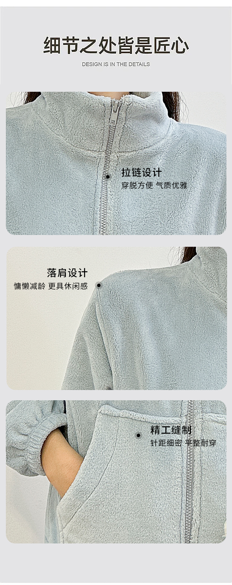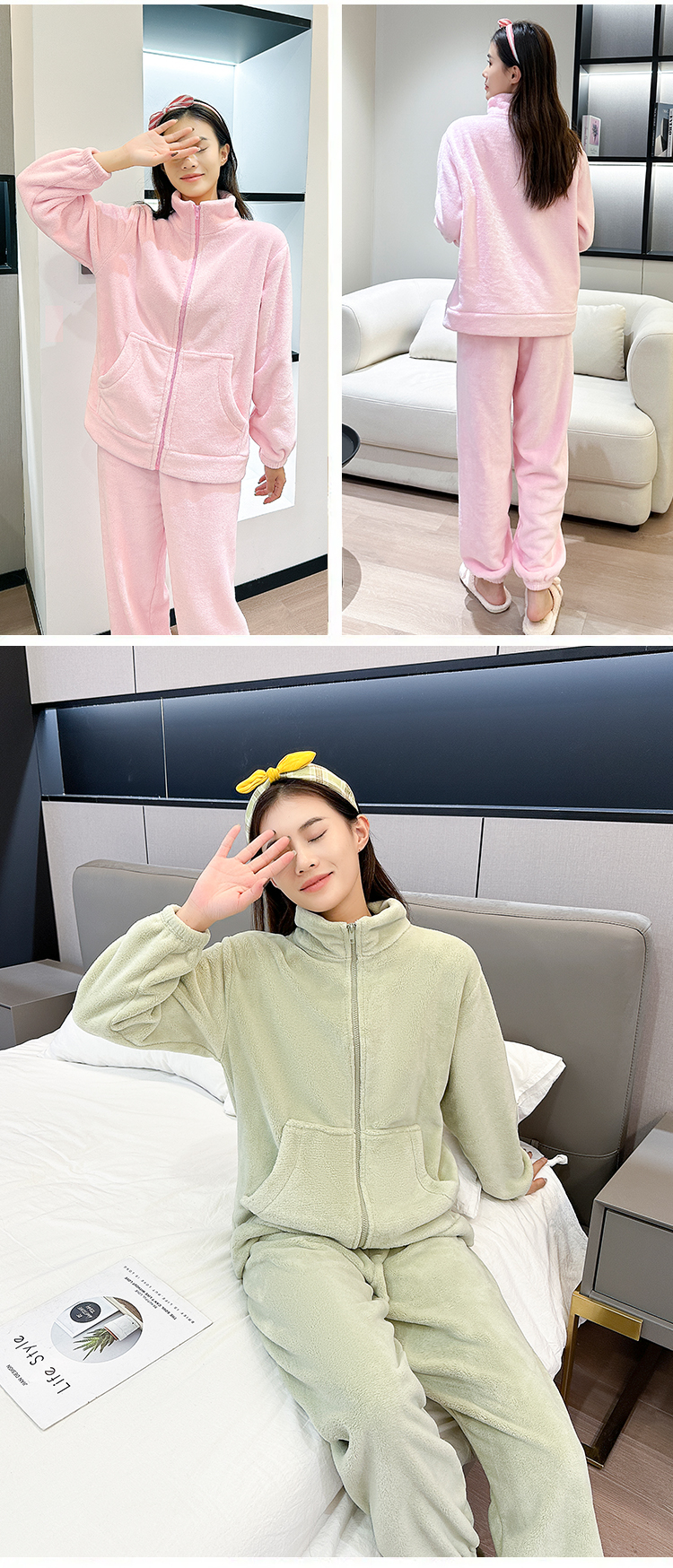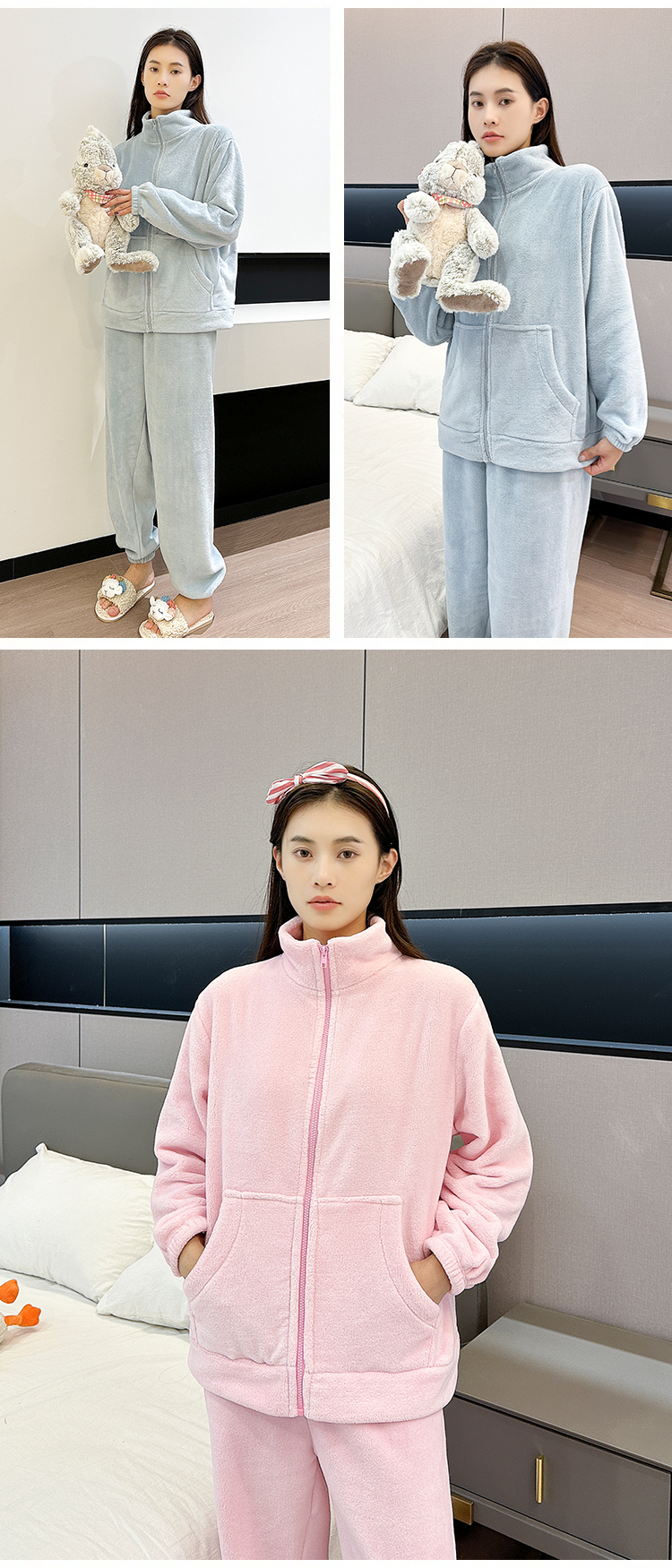 [保暖又好看]【思思姐专享】北极绒家居休闲套装睡衣套装保暖家居服拉链时尚[去首页领现金红包]