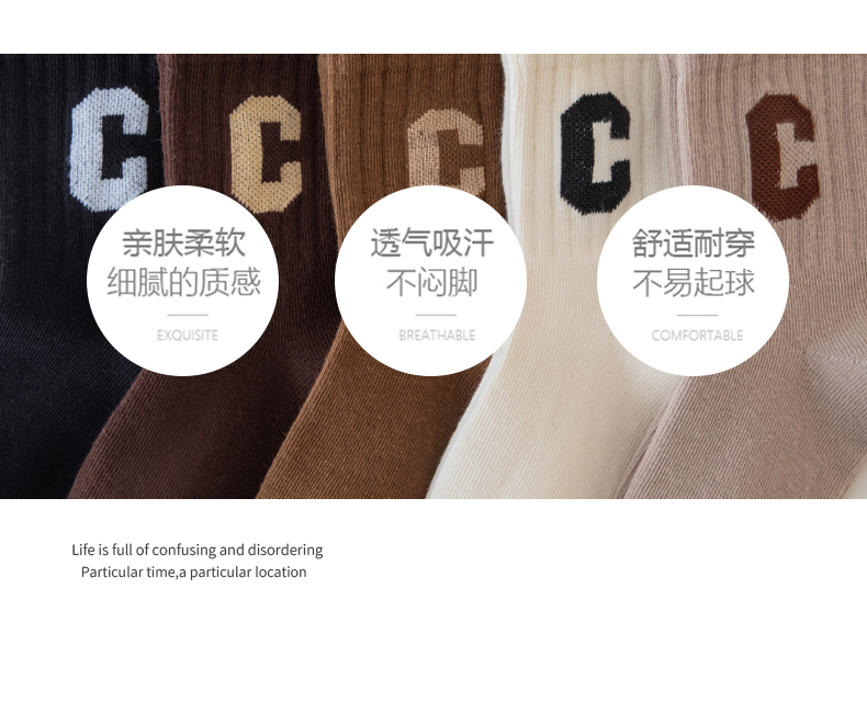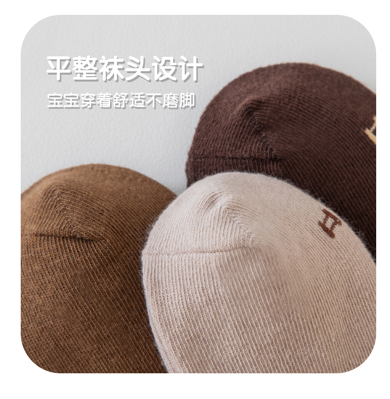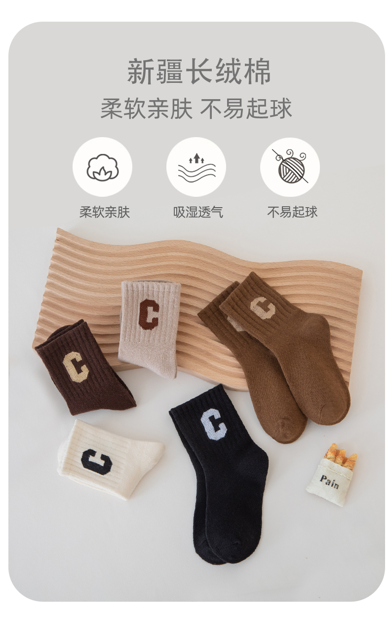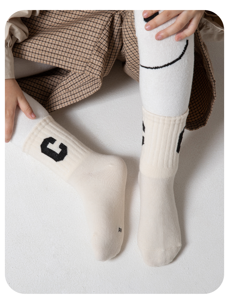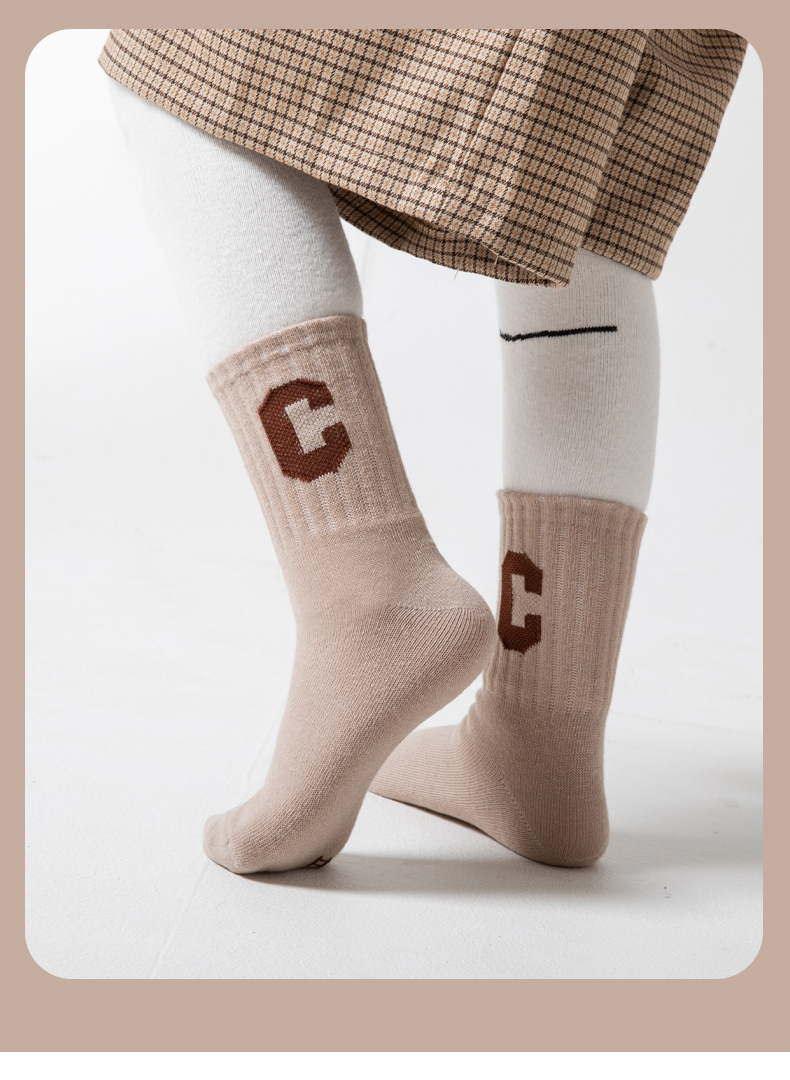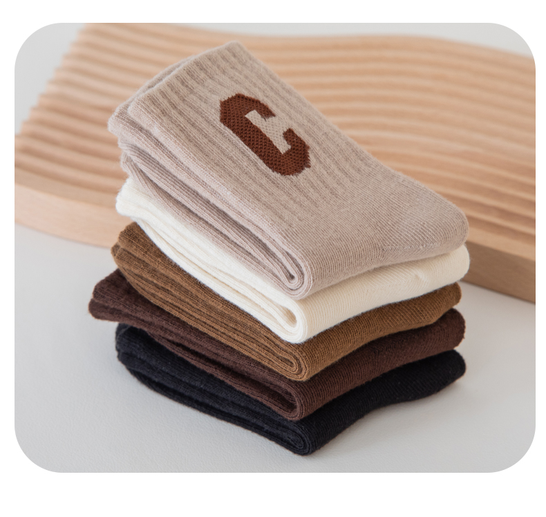 [保暖又好看]儿童袜子秋冬季咖色系C字母棉袜中筒袜男童女童潮袜宝宝袜W062[去首页领现金红包]