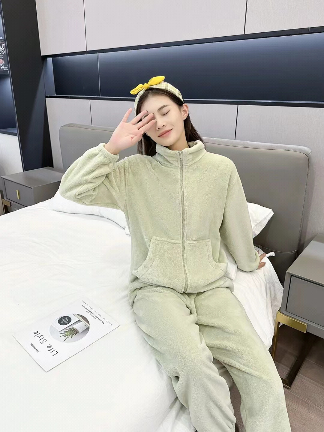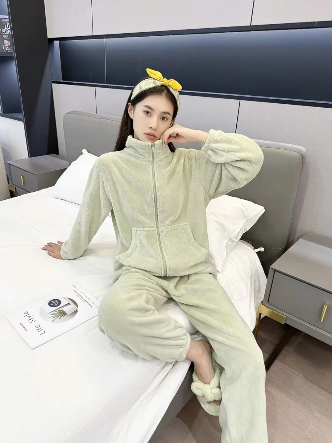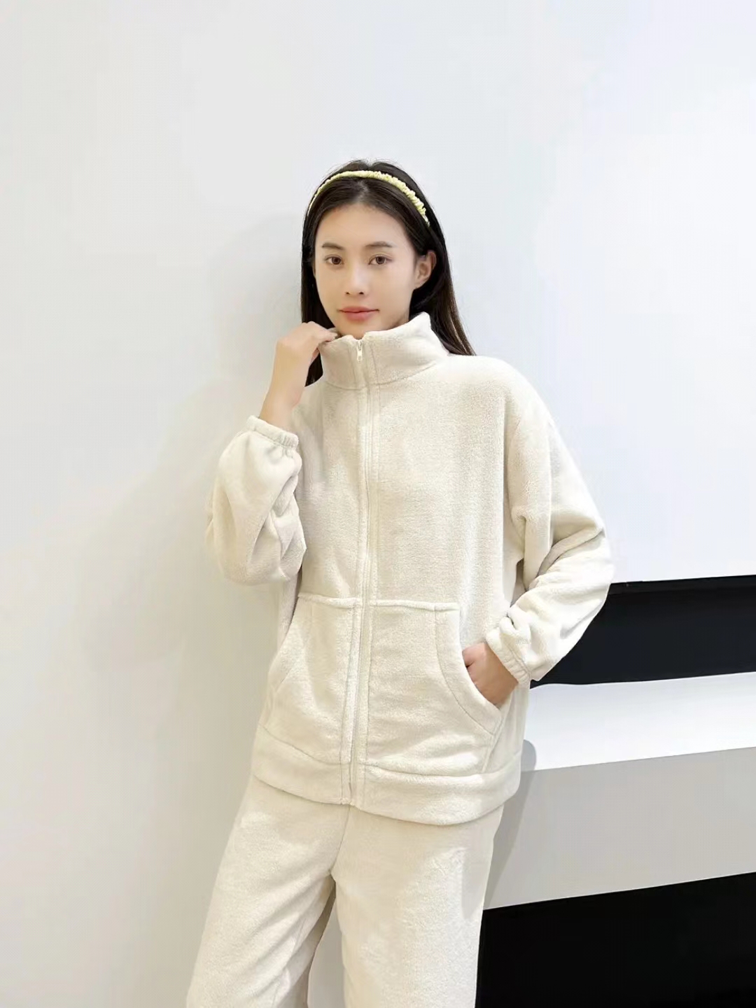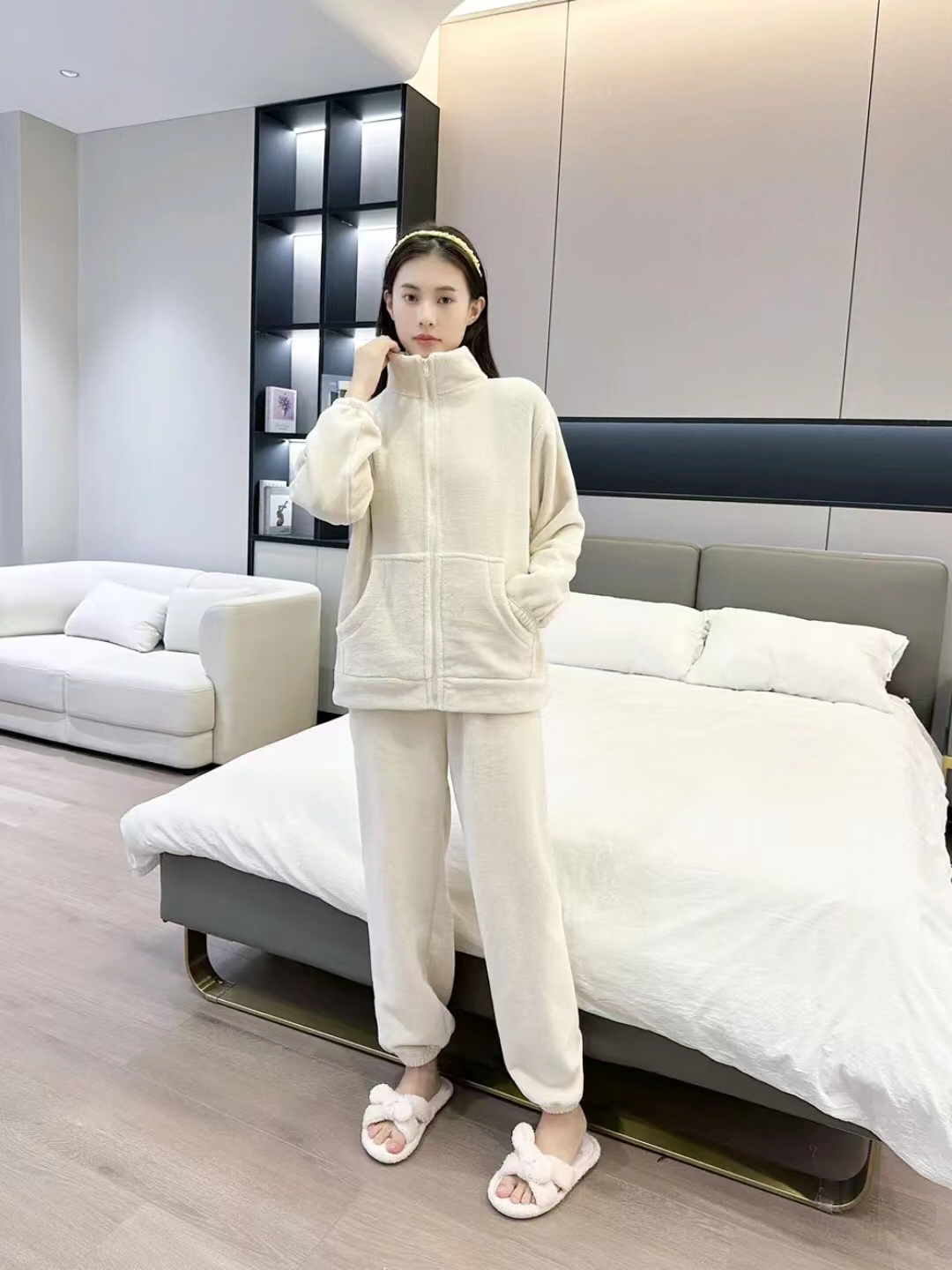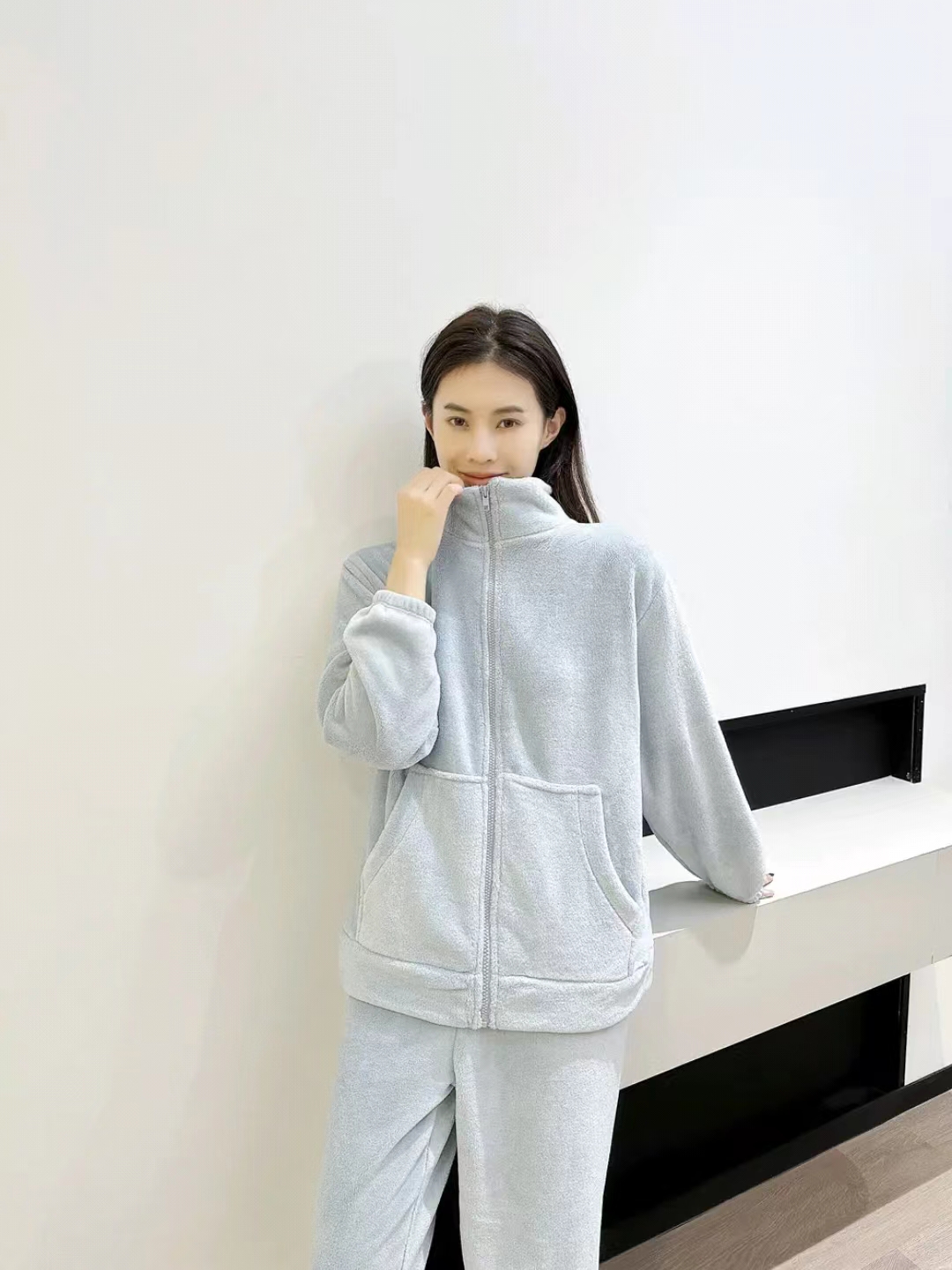 [保暖又好看]【思思姐专属】北极绒居家双面加绒拉链家居休闲套装睡衣时尚立领[去首页领现金红包]
