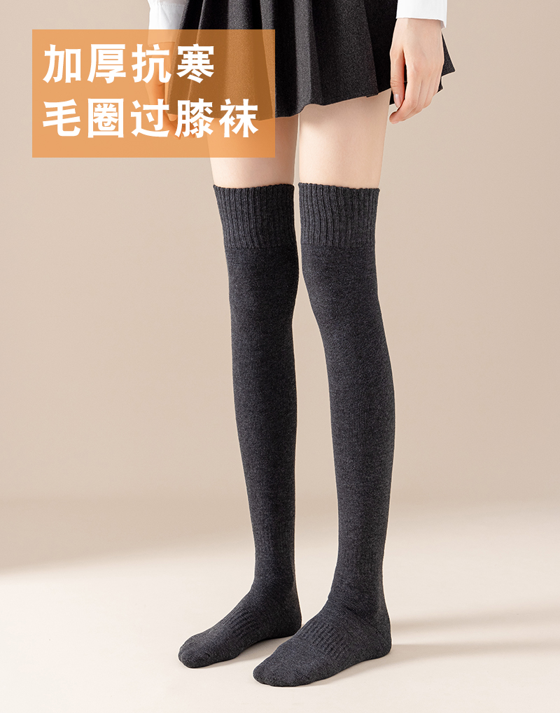 [保暖又好看]冬季加绒加厚毛圈女士过膝袜纯色保暖显瘦小腿袜女(34-40均码)[去首页领现金红包]