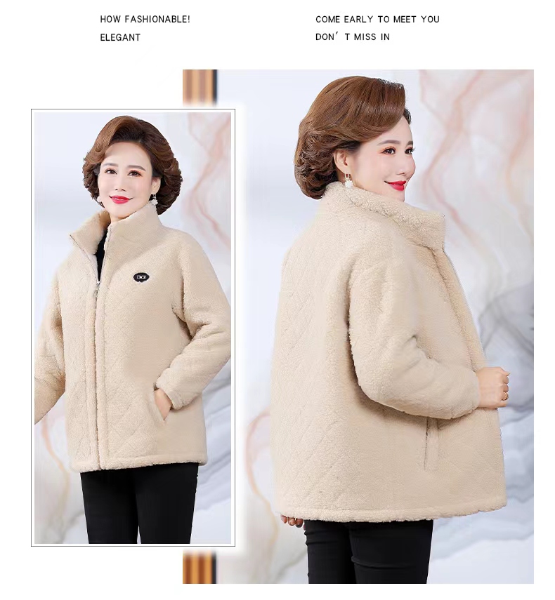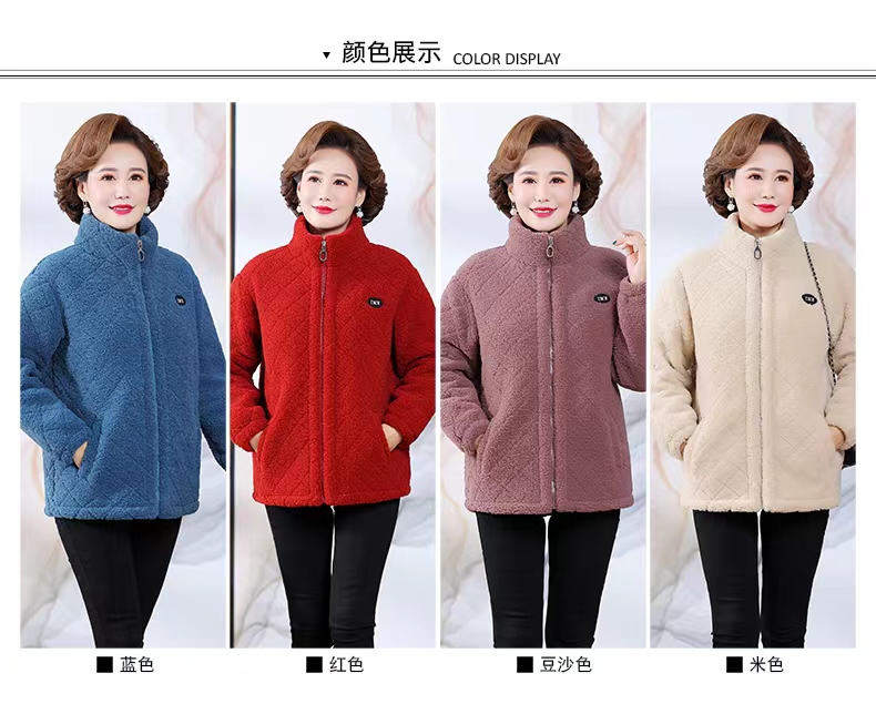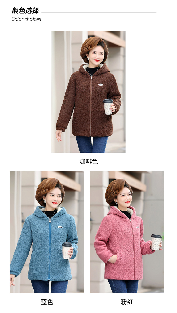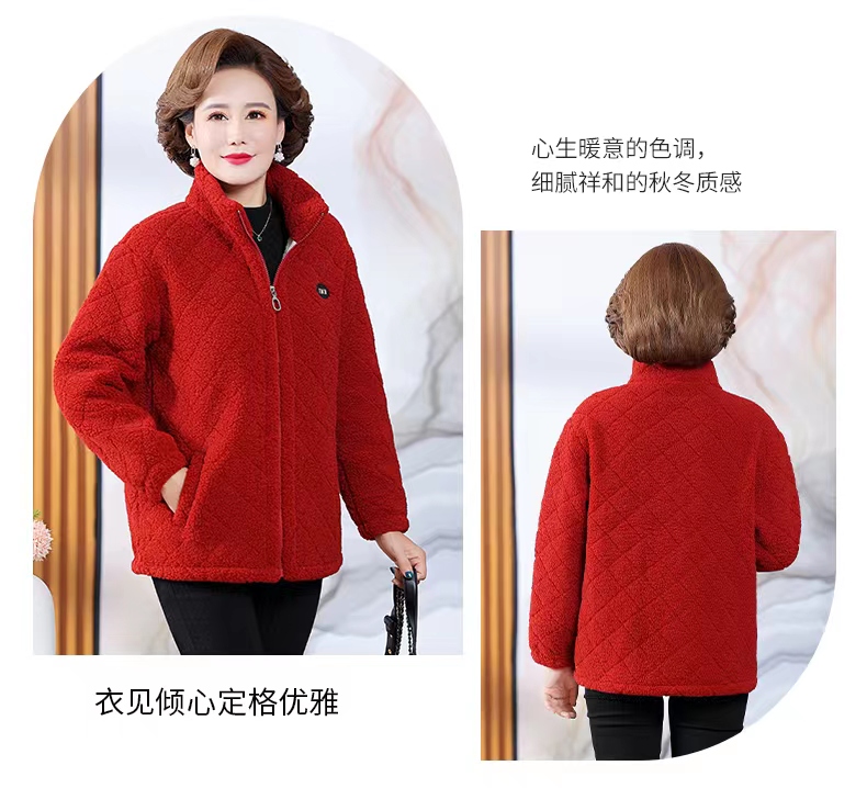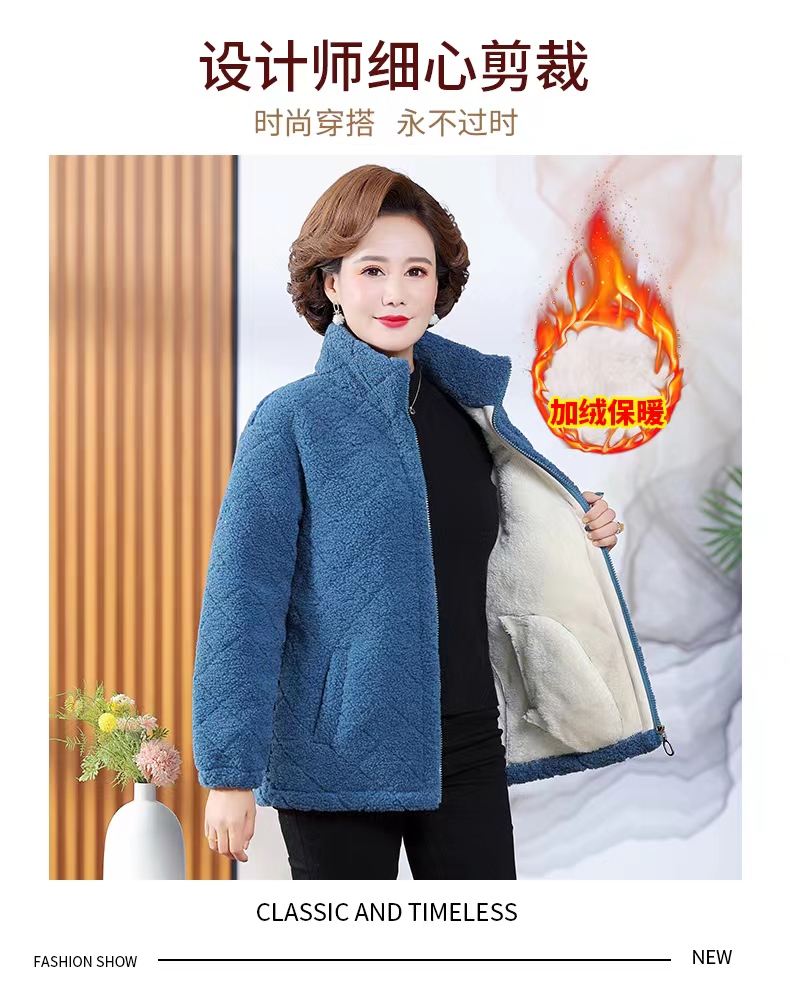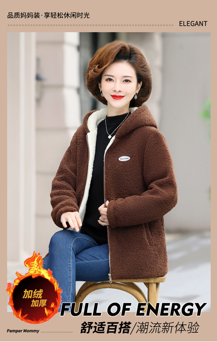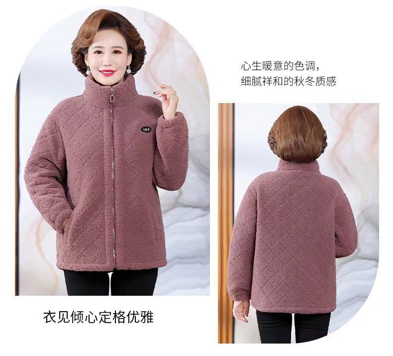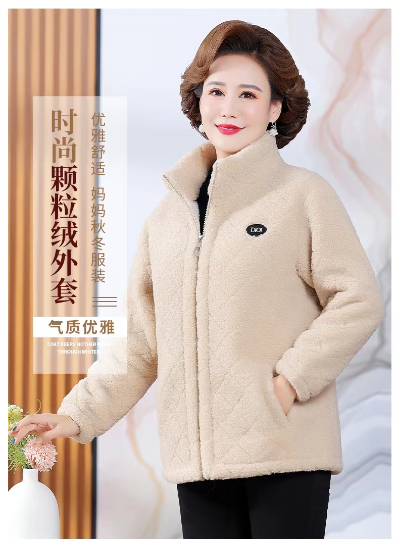 [保暖又好看]妈妈秋冬装颗粒绒外套加厚短款加绒卫衣女新款中老年时尚棉衣棉服[去首页领现金红包]