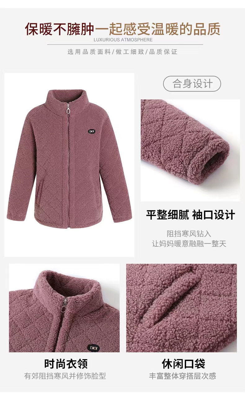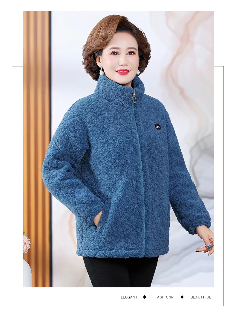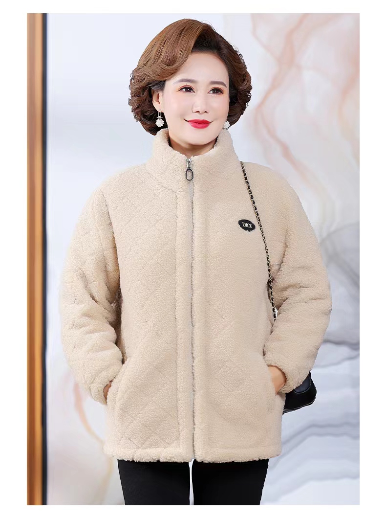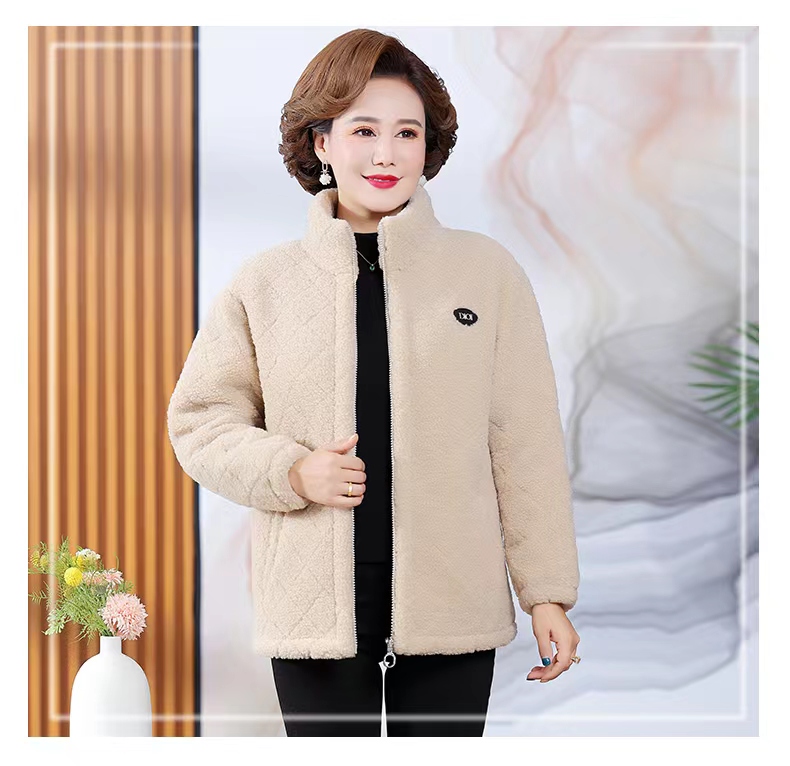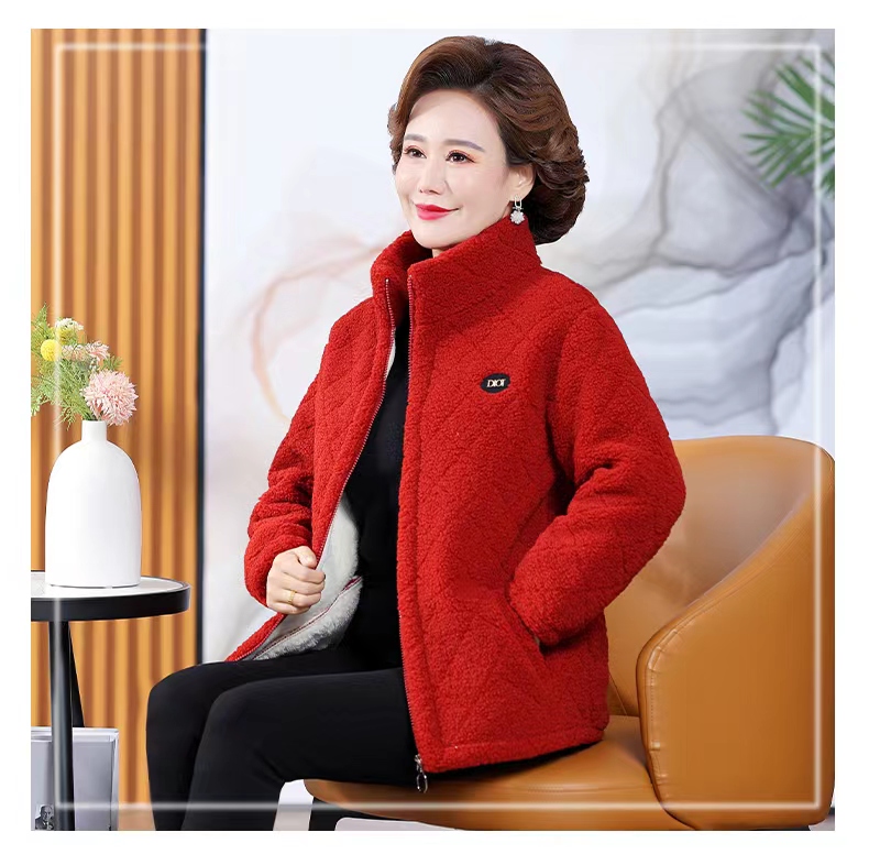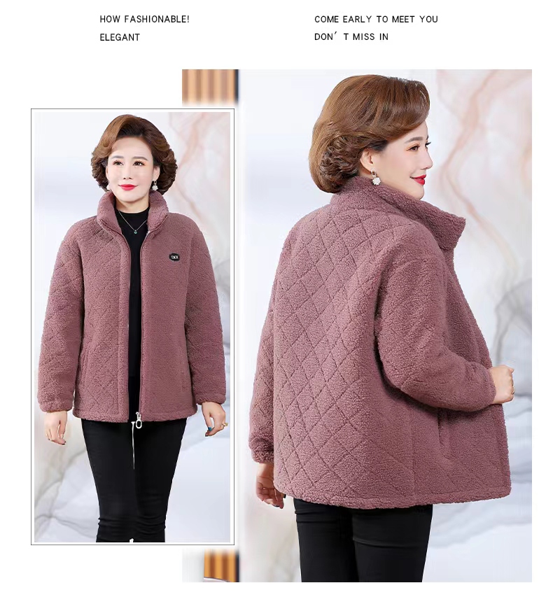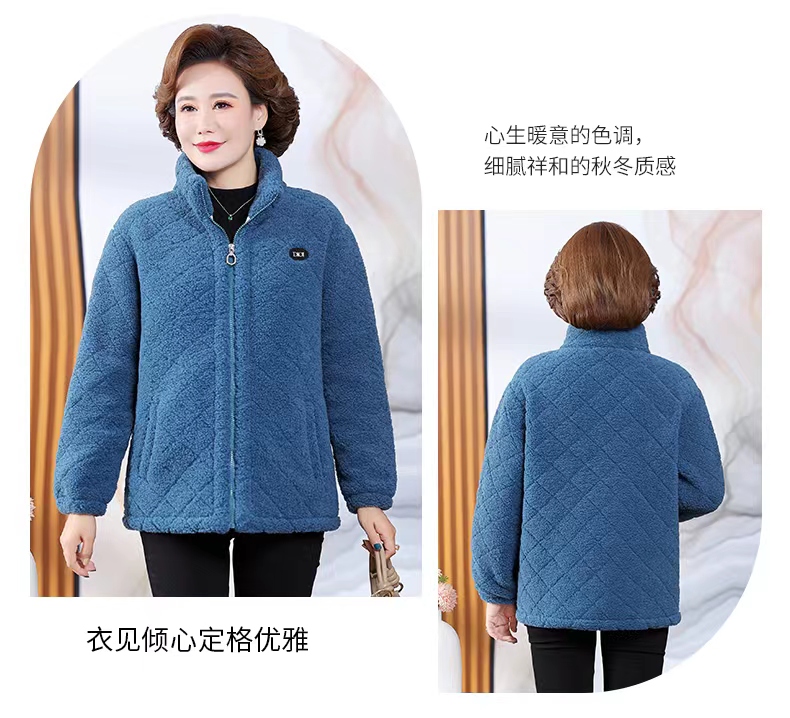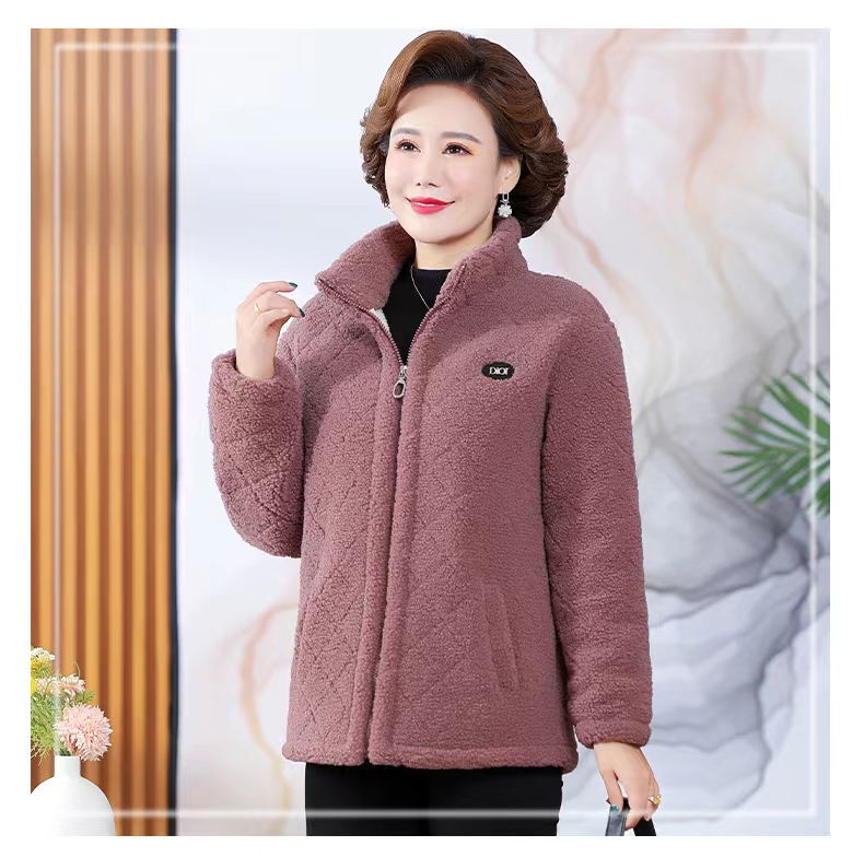 [保暖又好看]妈妈秋冬装颗粒绒外套加厚短款加绒卫衣女新款中老年时尚棉衣棉服[去首页领现金红包]