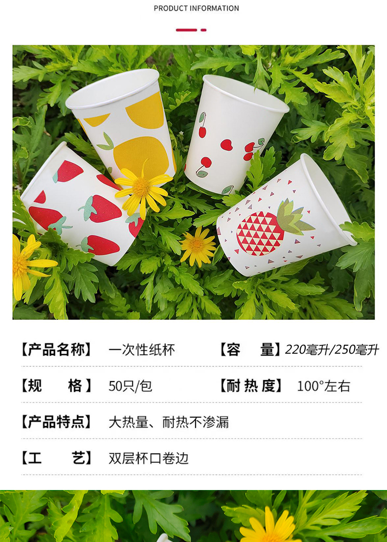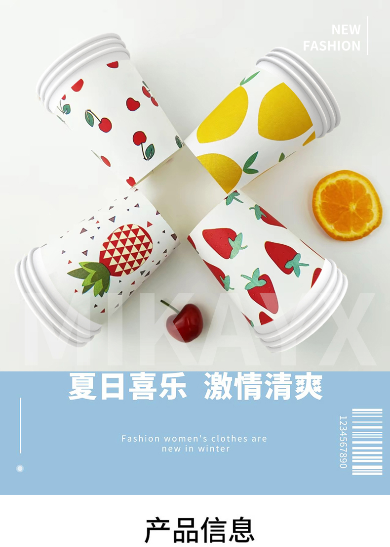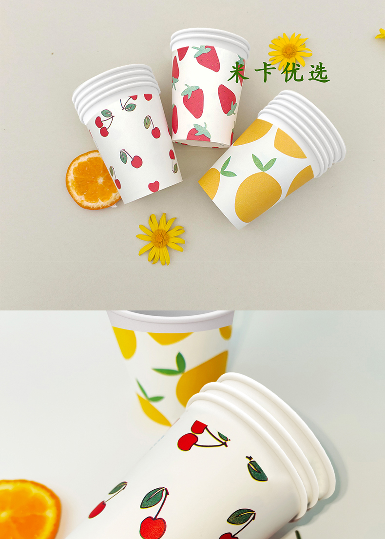 [品牌直供][150件起购]【9.9元150只】2023夏季家庭水果系列可爱一次性纸杯商用户外水杯[去首页领现金红包]