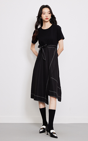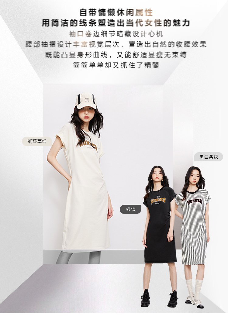 【腰部捏褶设计】纸莎草纸 面料:棉92%氨纶8%(装饰除外) 锻铁 面料:棉92%氨纶8%(装饰除外) 黑白条纹面料:粘纤92%氨纶8%(装饰除外)