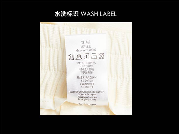 30度水温下正常手洗,请避免含碱性的洗涤用品,反面洗涤、不宜用力拉伸,避免高温熨烫。