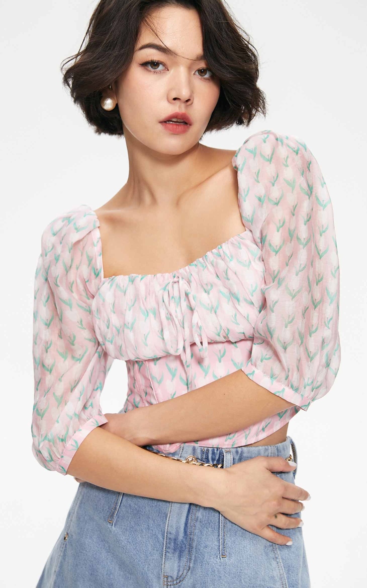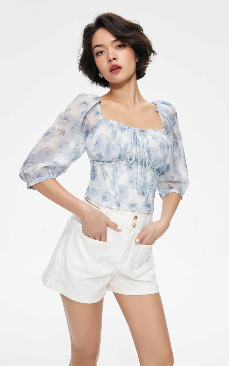 白色郁金香印花、蓝色玫瑰印花、模糊水彩