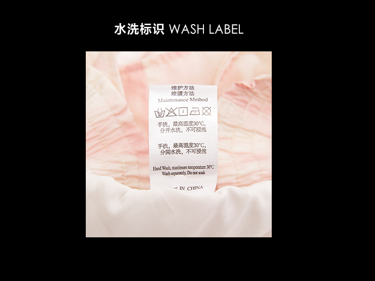 30度水温下正常手洗,请避免含碱性的洗涤用品,反面洗涤、不宜用力拉伸,避免高温熨烫。